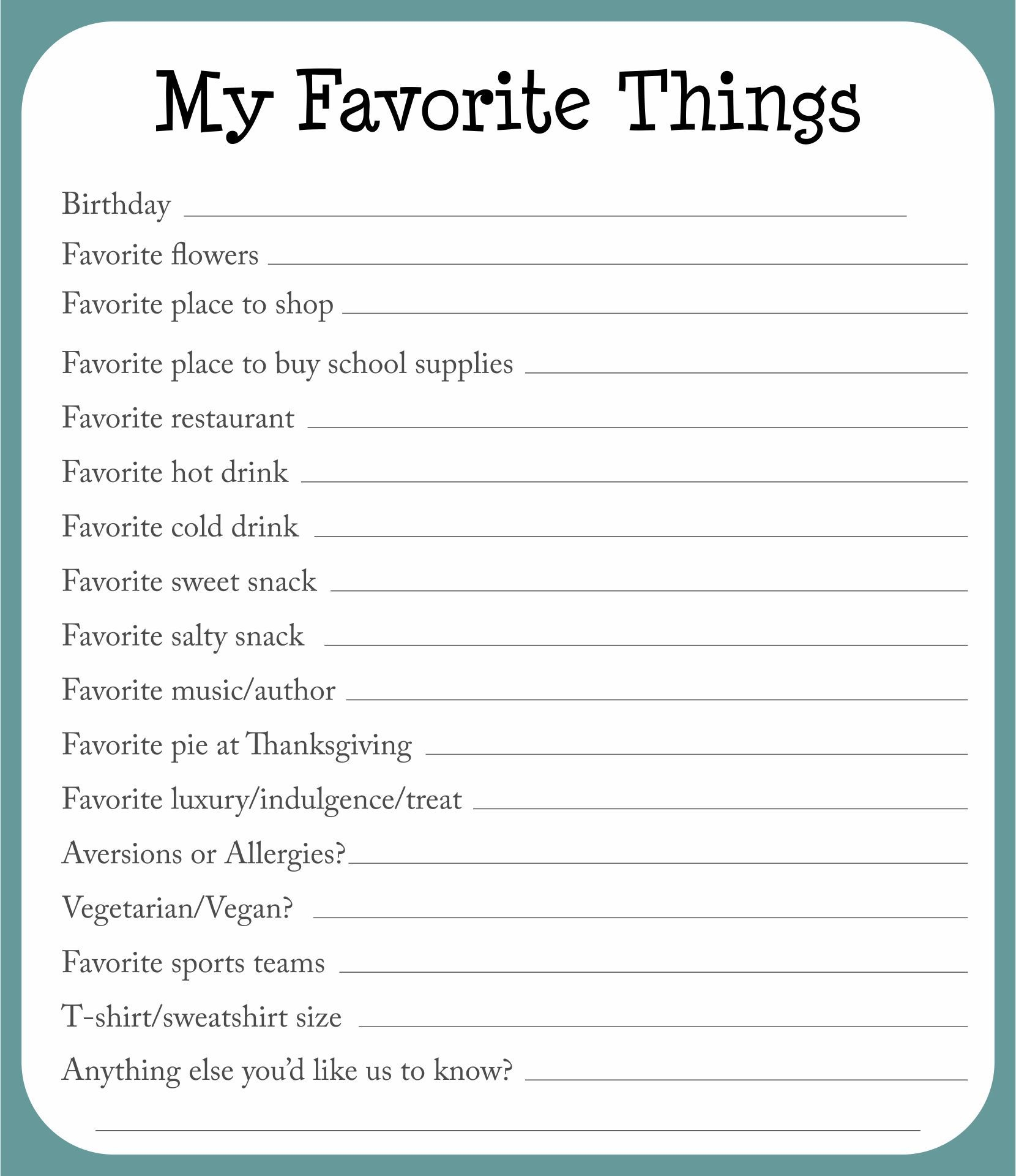 My Favorite Things List Free Printable Gift Ideas For Teachers