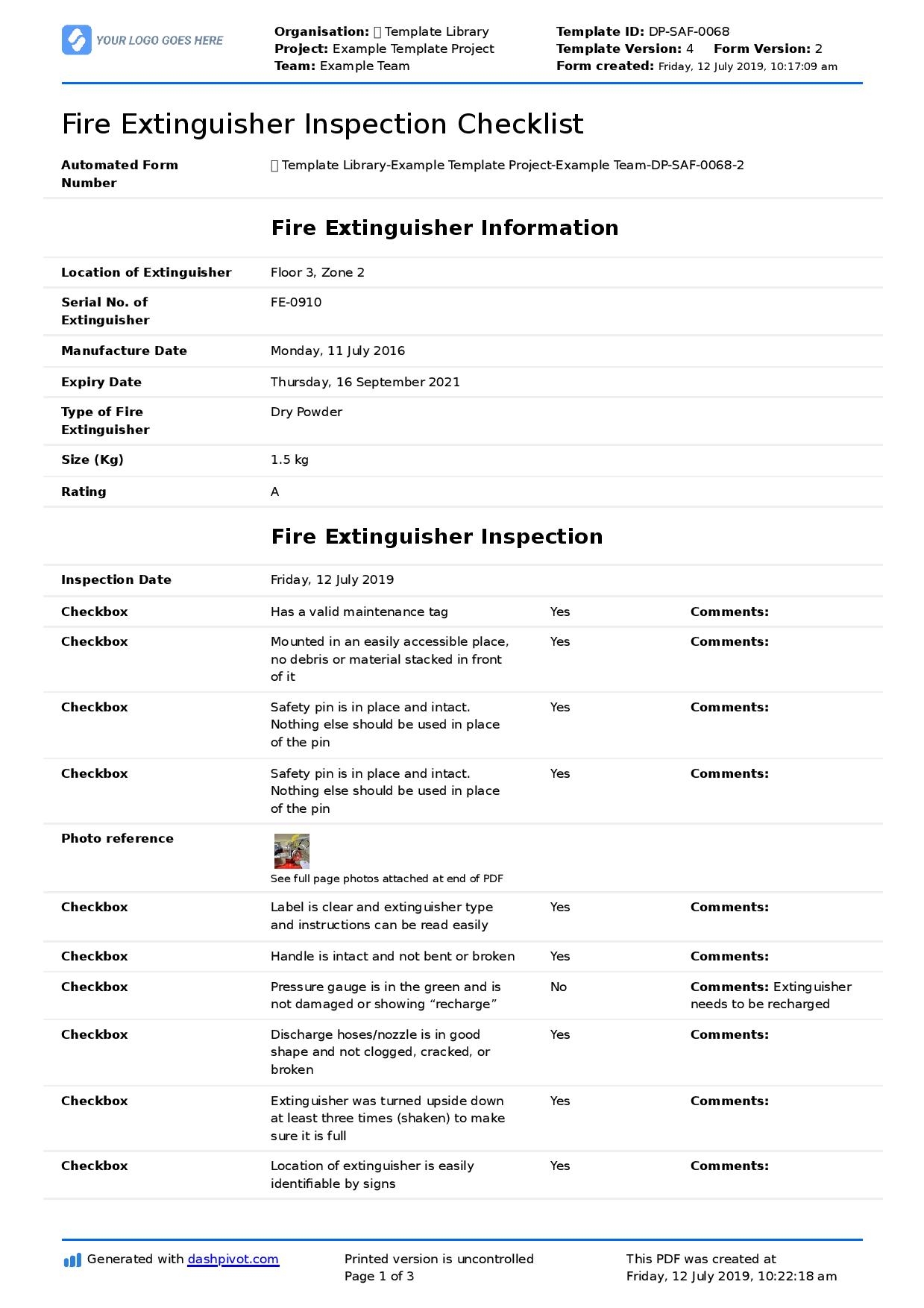 Fire Extinguisher Inspection Checklist Template Better Than Excel PDF