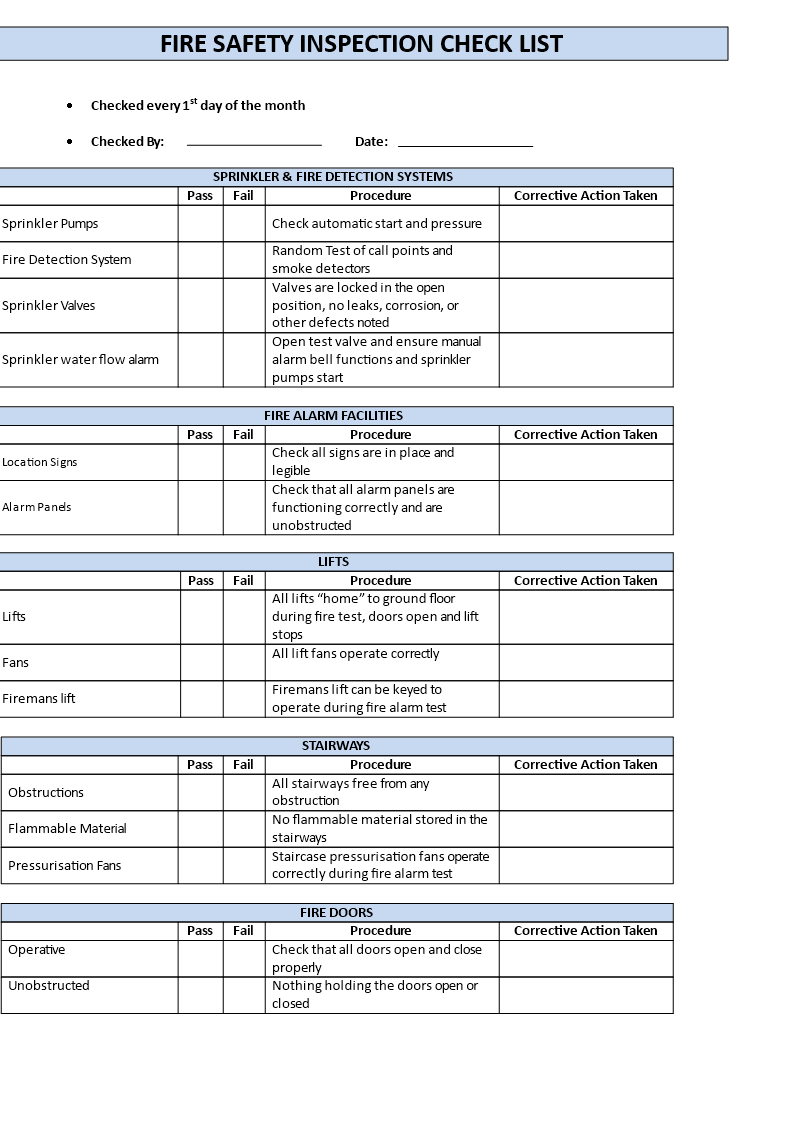 Printable templates are a valuable resource for both personal and professional jobs, as they offer a pre-designed framework for your material. By utilizing these Printable Fire Inspection Checklist Template, you can streamline the style process and save time and effort, allowing you to focus on other essential elements of your project.