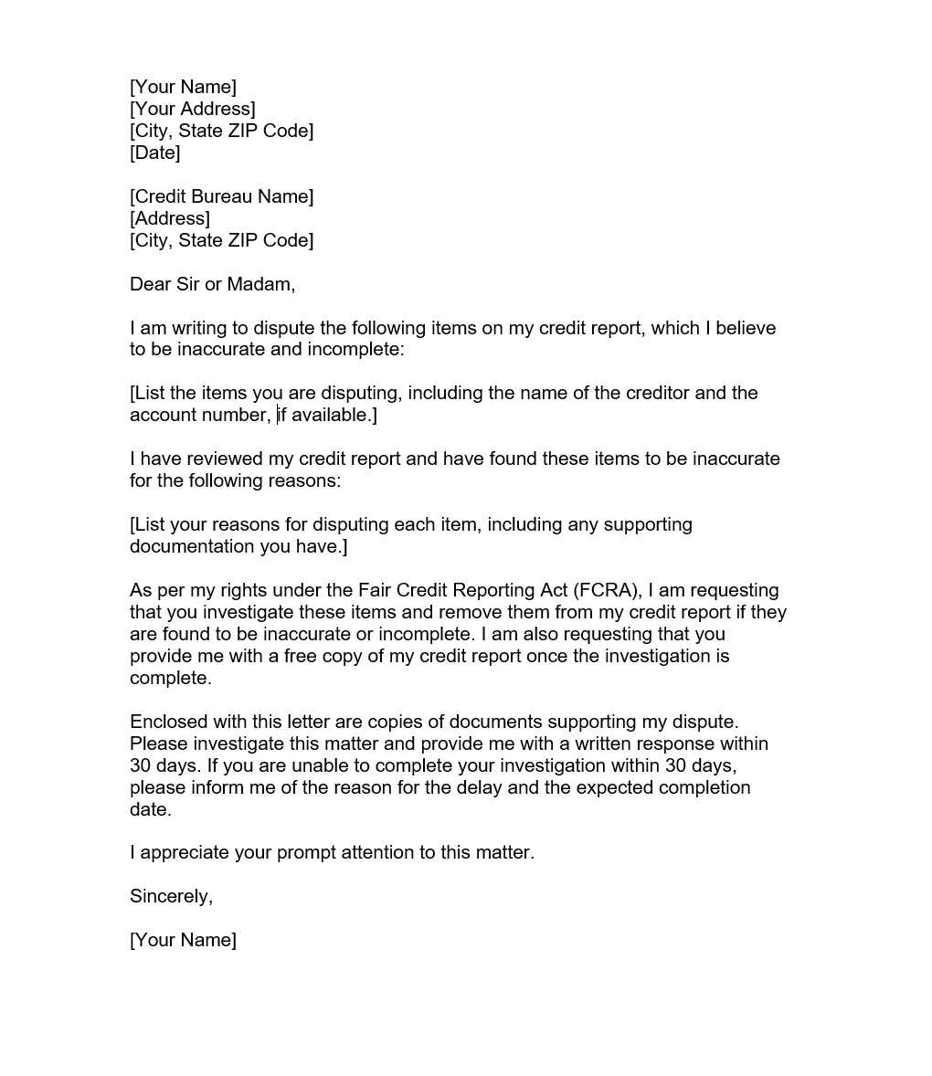 50 Best Credit Dispute Letters Templates Free TemplateLab