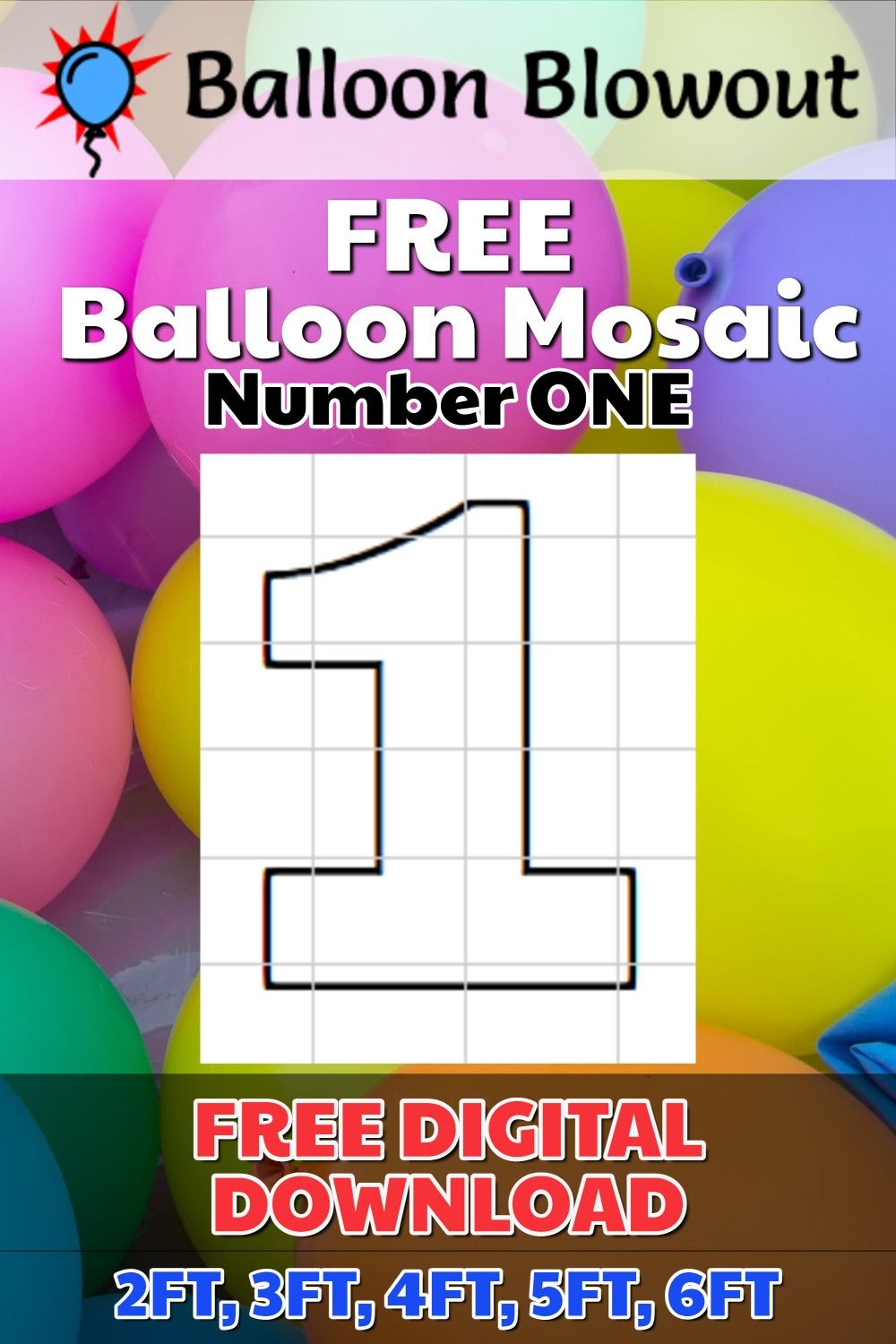 FREE Balloon Mosaic Number 1 ONE Template Frame Kit PDF Large Printable DIY 2ft 3ft 4ft 5ft 6ft Balloon Template Balloon Letters Diy Balloons
