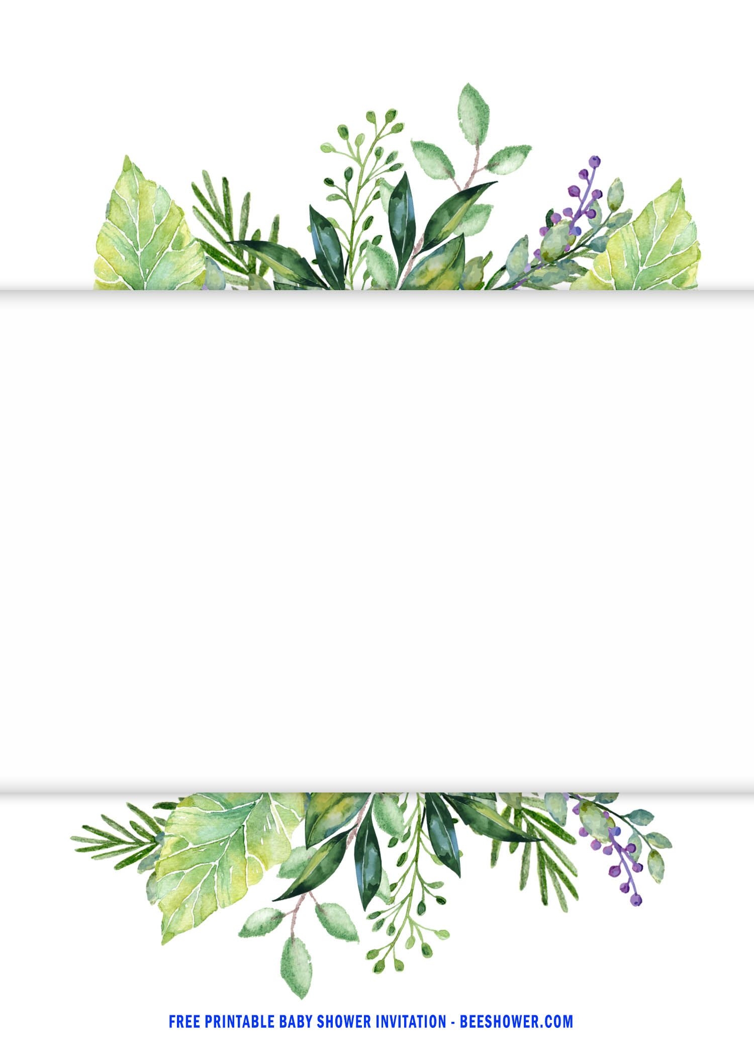 FREE Printable Cute Watercolor Greenery Invitation Templates Greenery Invitation Free Printable Baby Shower Invitations Cartoon Flowers