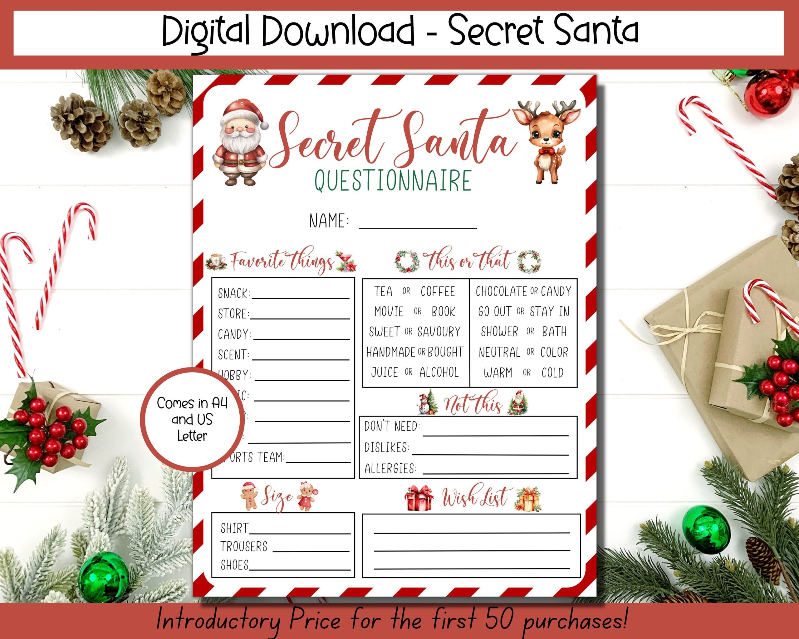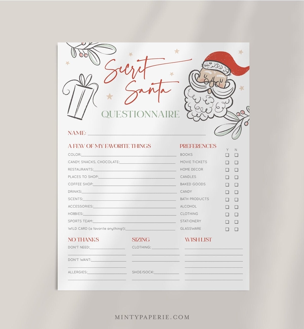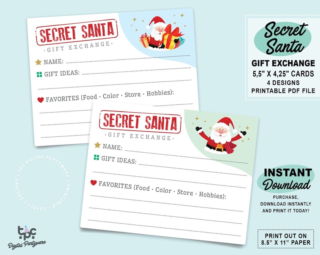 SECRET SANTA FORM Gift Exchange Cards Printable Christmas Gift List For Work Fun Secret Santa Party Questionnaire Kids Gift Template Etsy