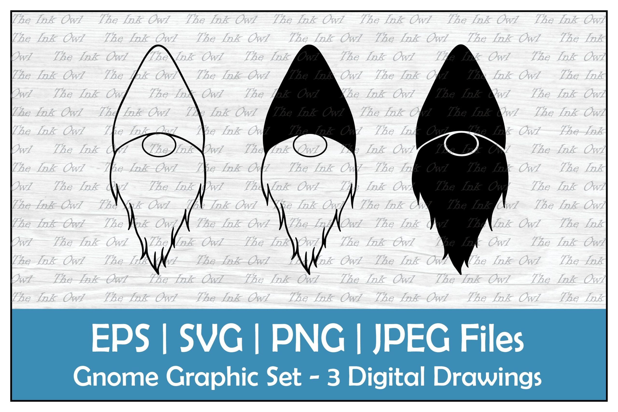 Beard Gnome Faces Outline Silhouette Clipart Set