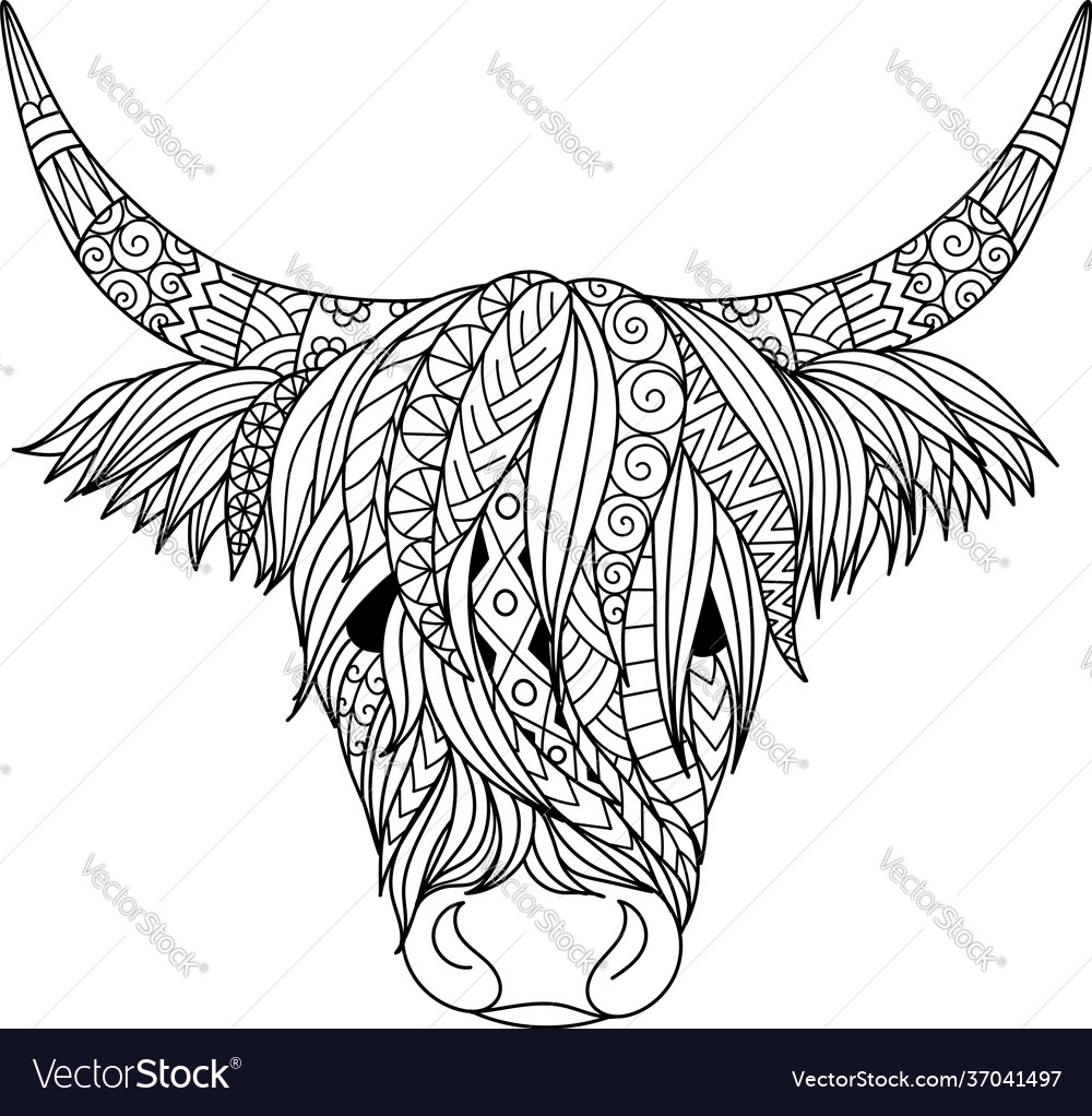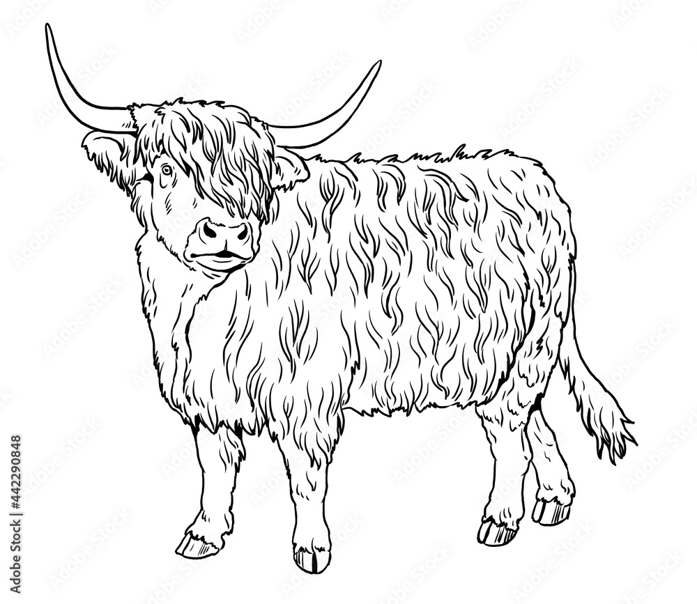 Highland Cattle Funny Farm Animals Template With Bull And Cow For Children To Paint Stock Illustration Adobe Stock