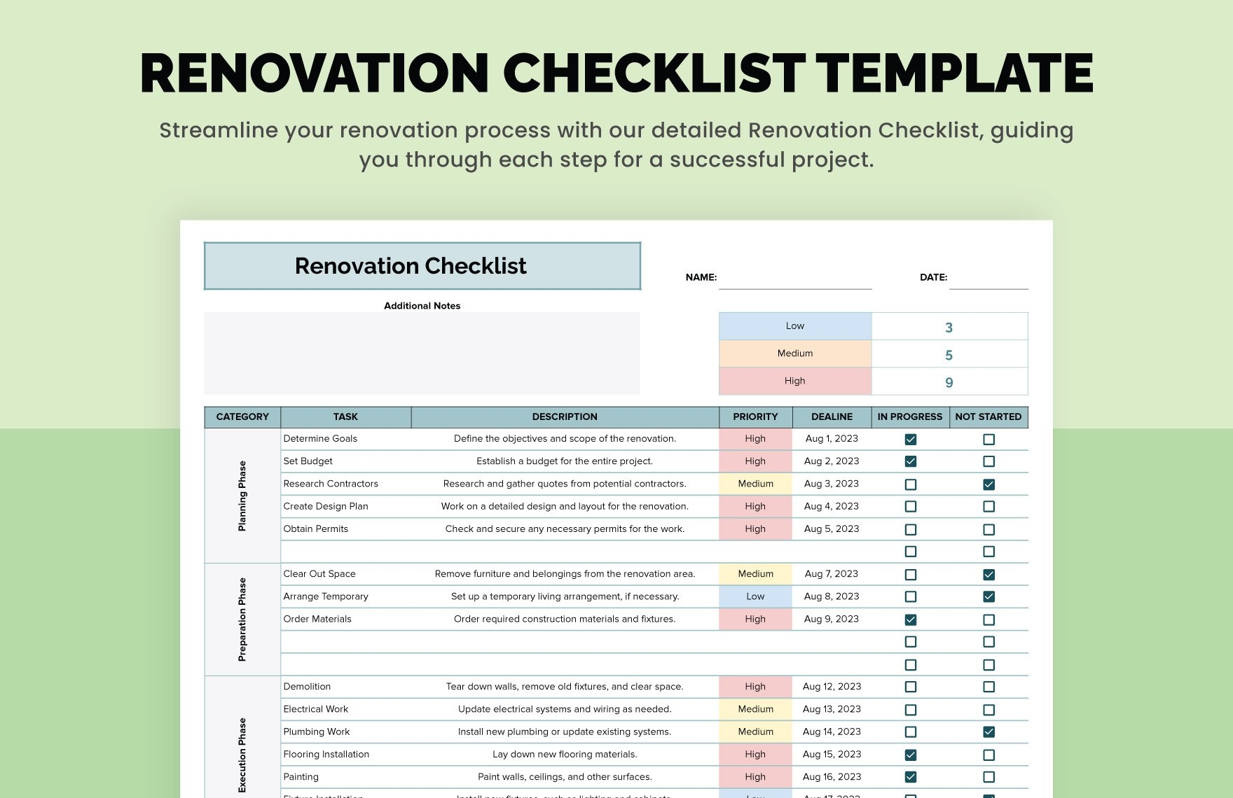 Printable templates are an important resource for both personal and professional projects, as they offer a pre-designed framework for your material. By utilizing these Printable Home Renovation Checklist Template, you can enhance the style process and conserve time and effort, permitting you to concentrate on other essential aspects of your project.