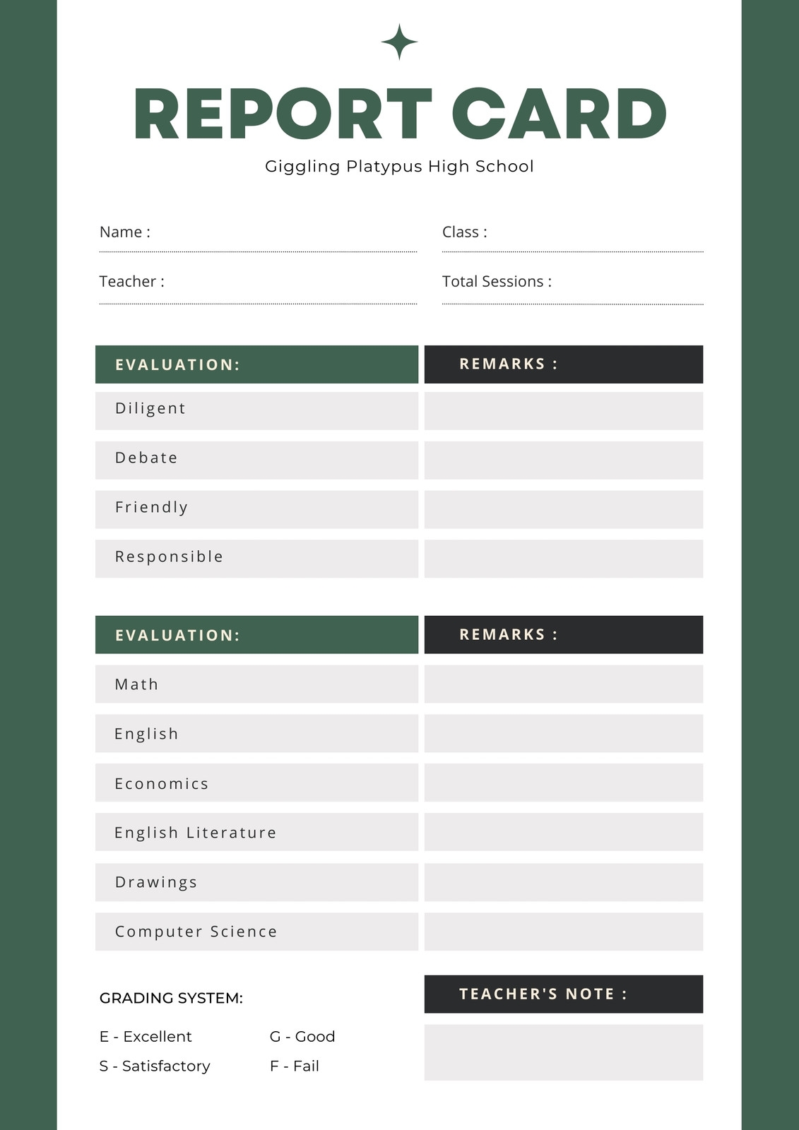 40 Editable Homeschool Report Card Templates Report Card Template School Report Card Report Card