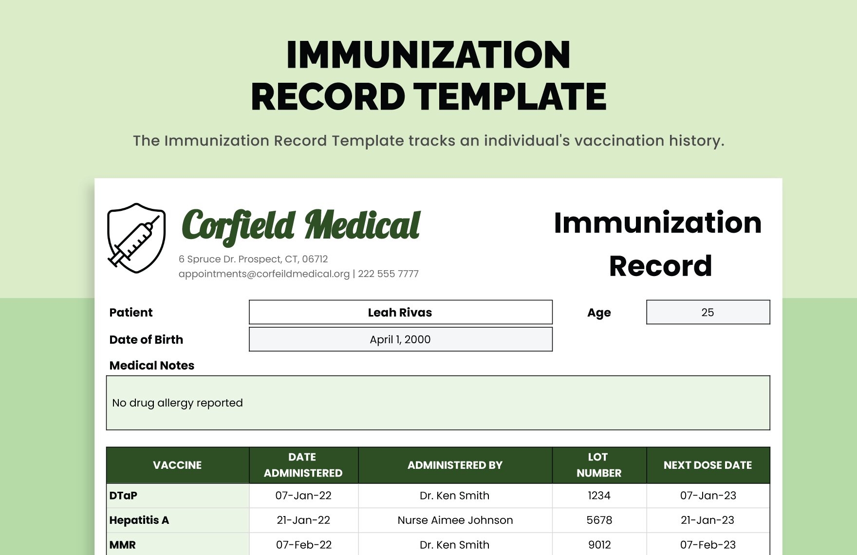 Printable Immunization Record Template