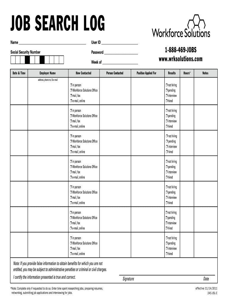 Job Search Log Fill Online Printable Fillable Blank PdfFiller