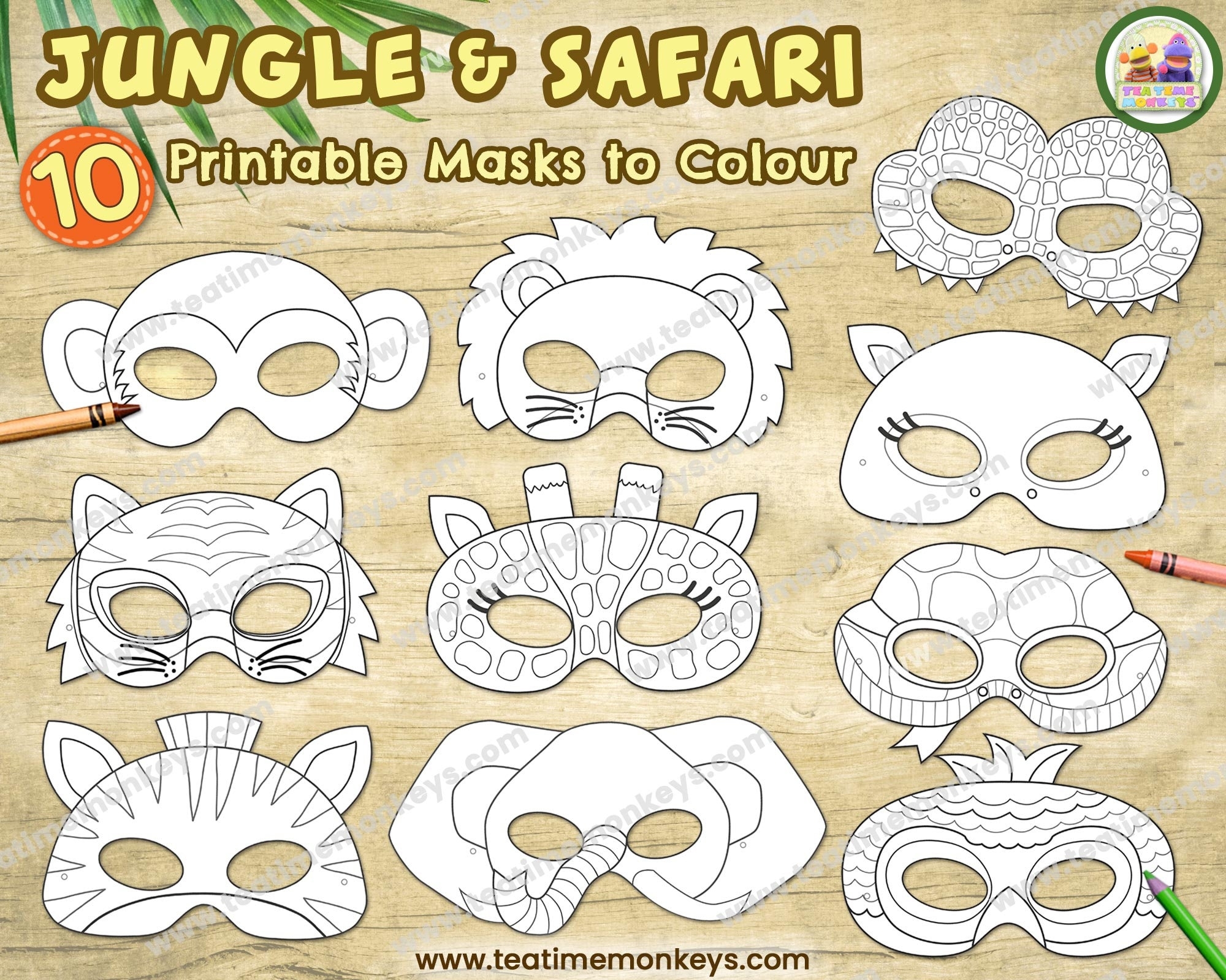 Cute Jungle Animal Printable Masks Tea Time Monkeys Jungle Animal Crafts Safari Crafts Animal Masks For Kids