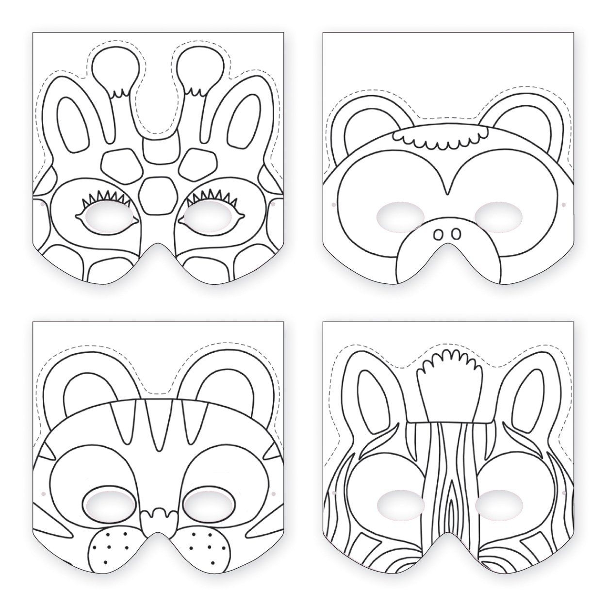 Jungle Animal Mask Printable Coloring Page
