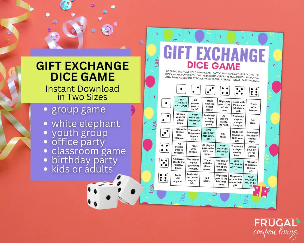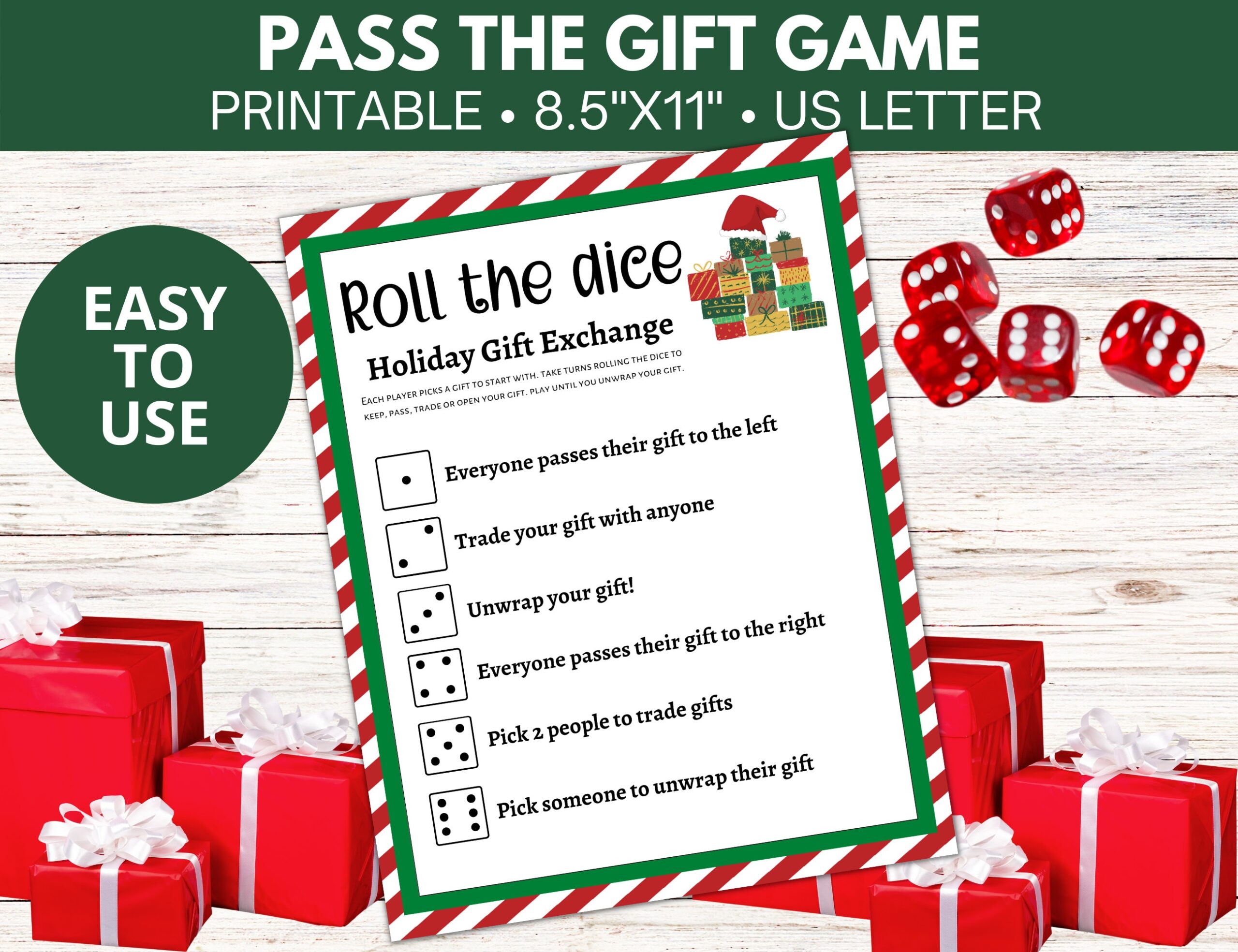 Gift Exchange Game Two Dice Gift Exchange Dice Game White Elephant Gift Exchange Rules Group Party Printable Left Right Game PDF Etsy