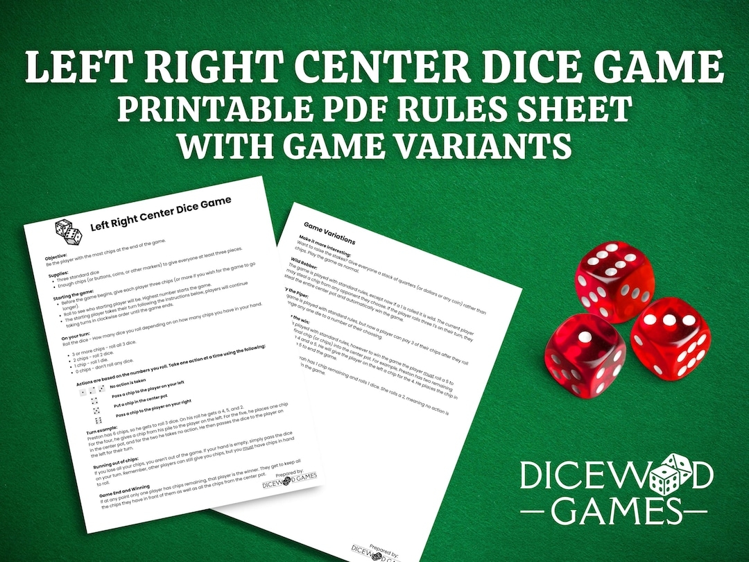 Left Right Center Rules Printable Left Right Center Instructions Left Right Center Dice Game Printable PDF Printable Game Instructions Etsy