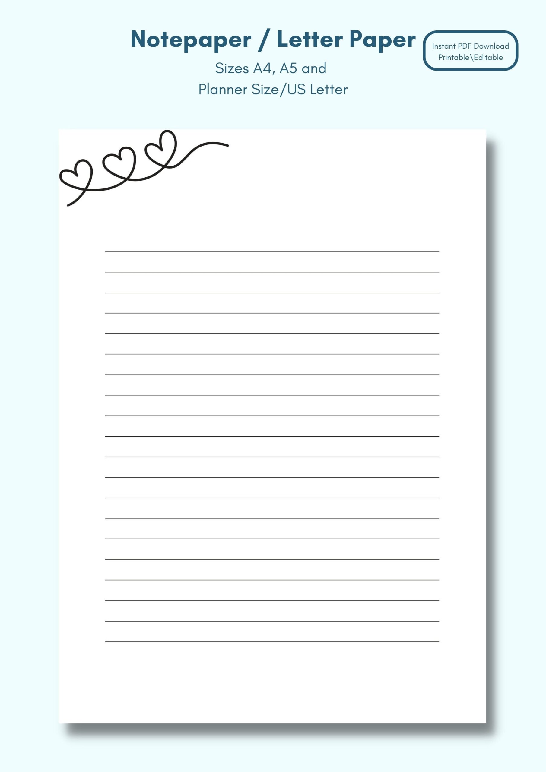 Digital Note Paper Letter Writing Template Downloadable Stationery Stationary Love Hearts Lecture Notes Notetaking Etsy