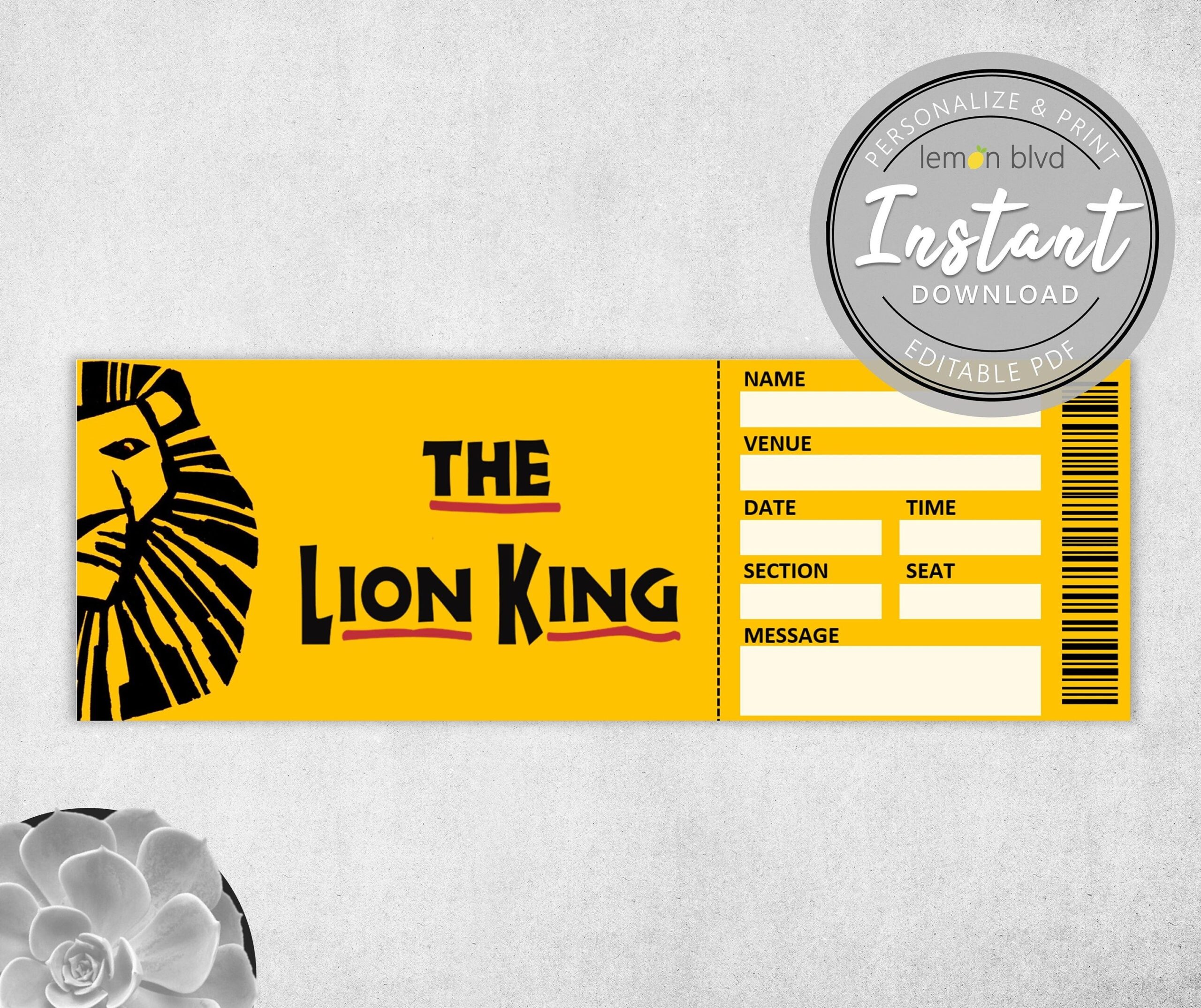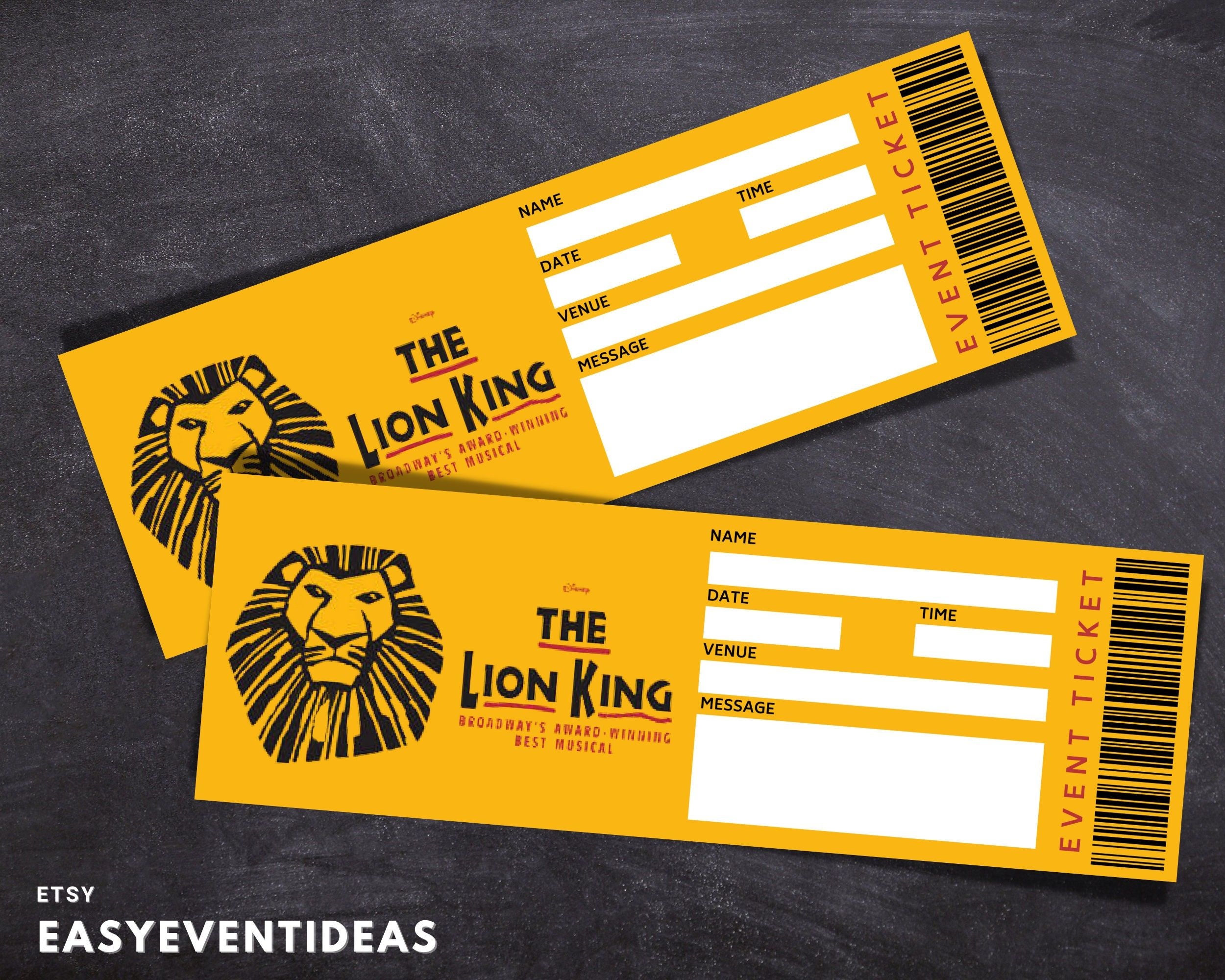 Printable LION KING Broadway Surprise Ticket Editable Musical Theatre Faux Event Admission Souvenir Keepsake PDF Instant Digital Download Etsy