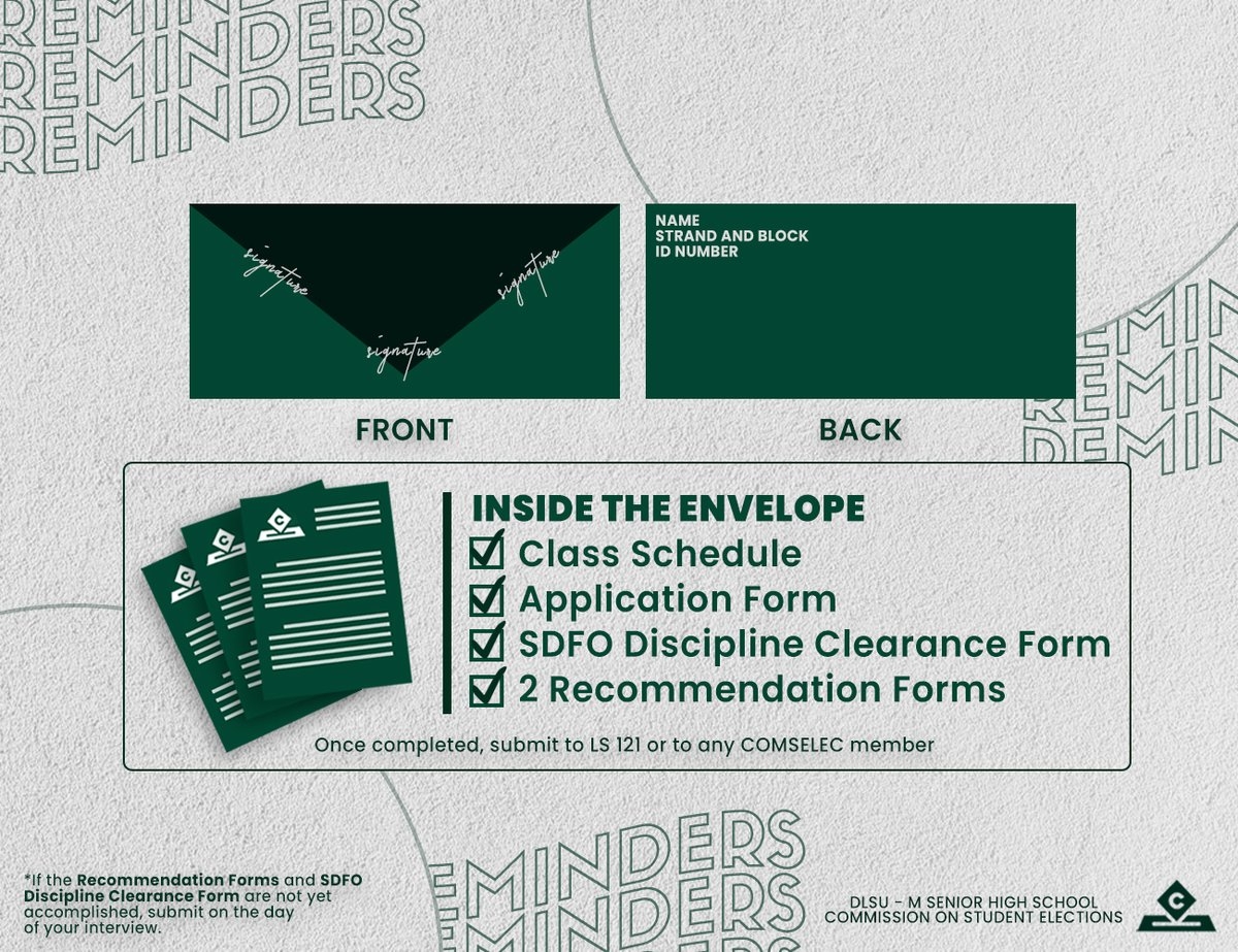 DLSU M SHS COMSELEC On X Tomorrow S Almost The Big Day ID 119 That Means You Must Submit Your DLSU SHS COMSELEC Application Requirements Make Sure Your Forms Are Complete And In The