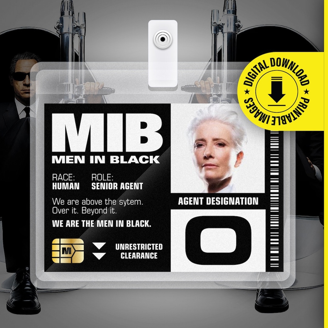 MIB Agent M Men In Black ID Badge Card Halloween Cosplay Costume Name Tag Printable PDF File Card Size 2 375 In X 3 375 In Etsy