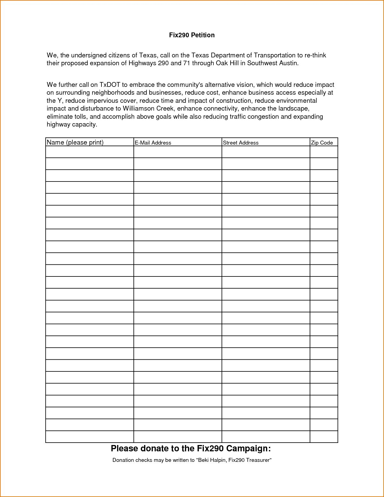 Printable Neighborhood Petition Template