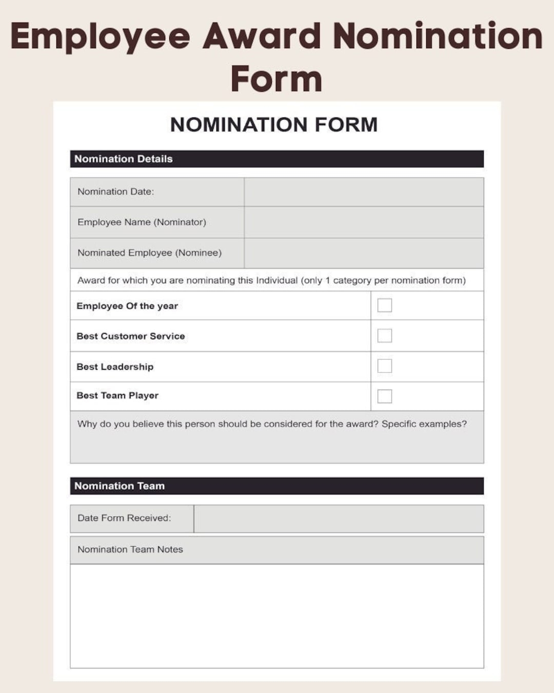 Employee Award Nomination Form Printable Employee Nomination Form Editable Employee Nomination Form Business Tools Etsy