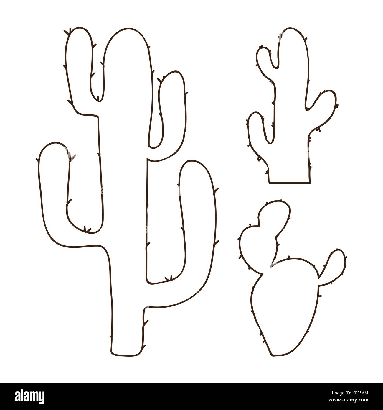 Hand Drawn Outline Cactus Set Stock Vector Image Art Alamy