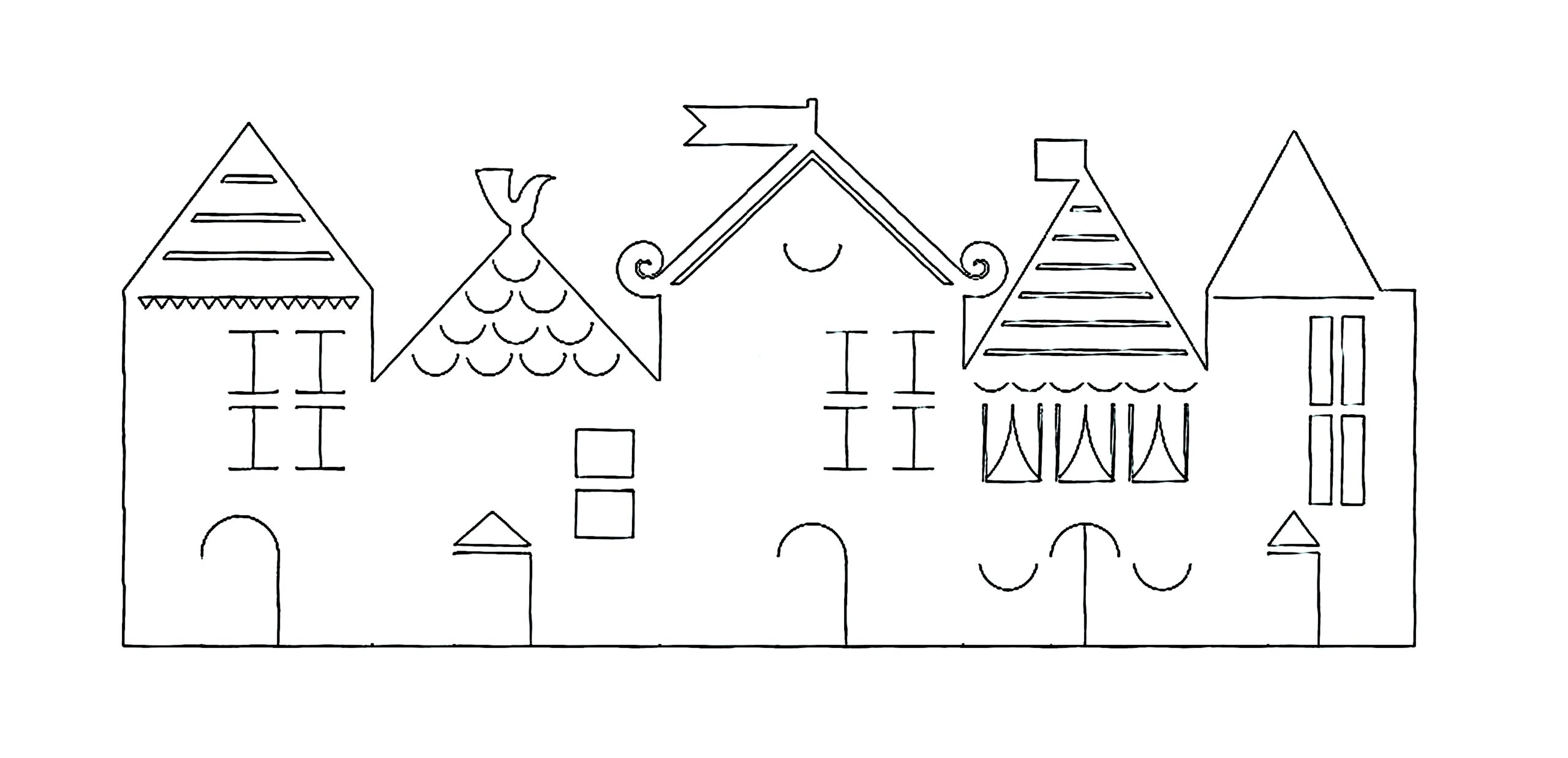 Printable Christmas Village For Coloring DIY Paper Cut SVG