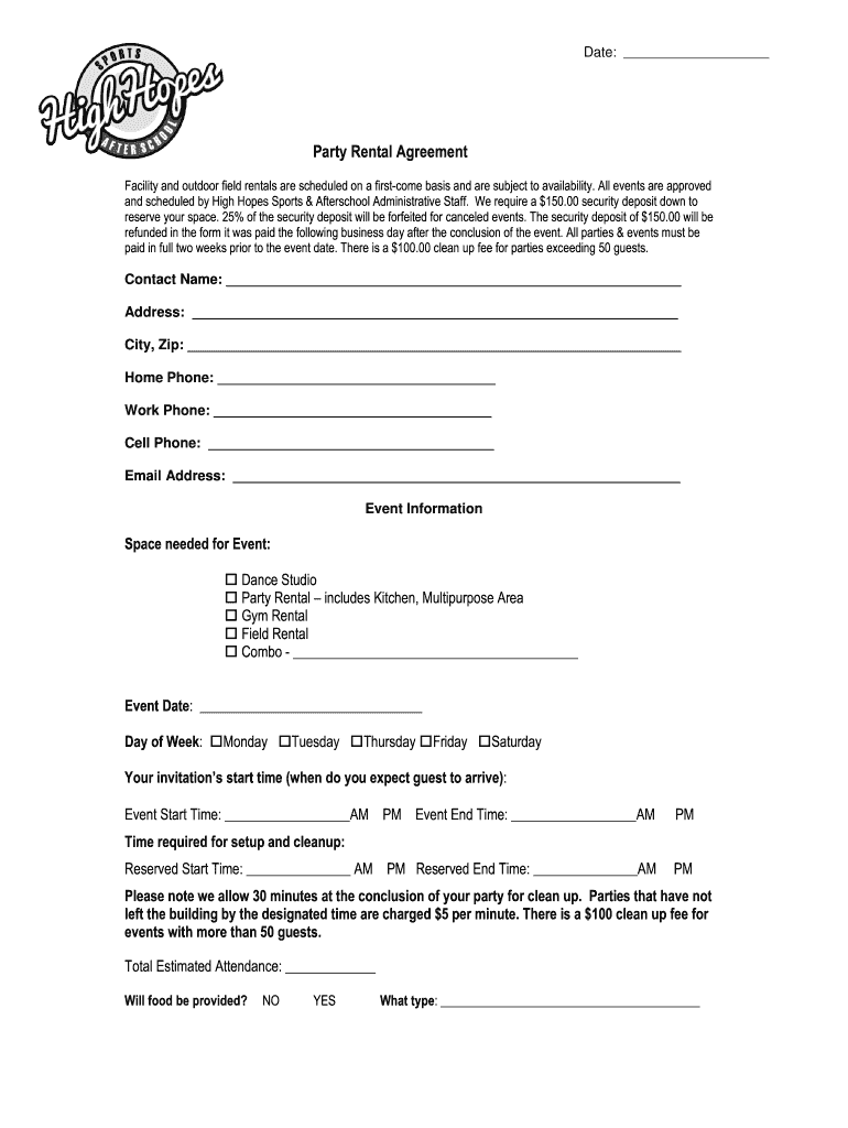High Hopes Party Rental Agreement Form Edit Fill Online Printable Fillable Blank PdfFiller