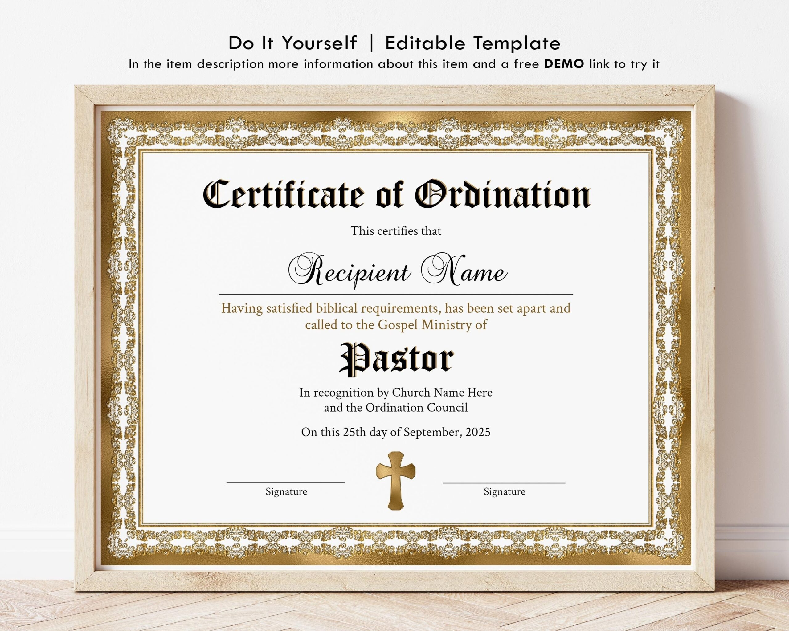 Printable Certificate Of Ordination Editable Ordained Etsy Printable Certificates Certificate Templates Certificate