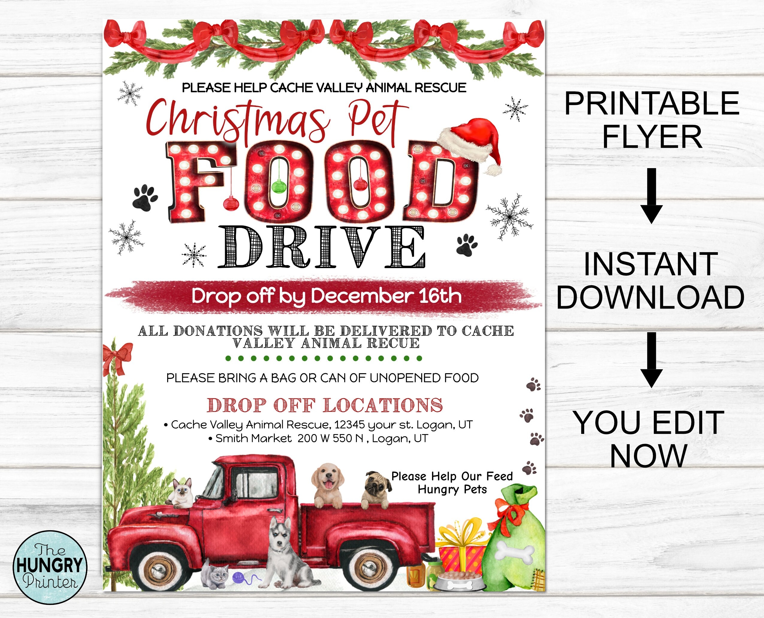 Editable Christmas Holiday Pet Food Drive Flyer Template 8 5×11 Flyer Animal Food Drive Shelter Furry Friends Instant Download 0262 Etsy