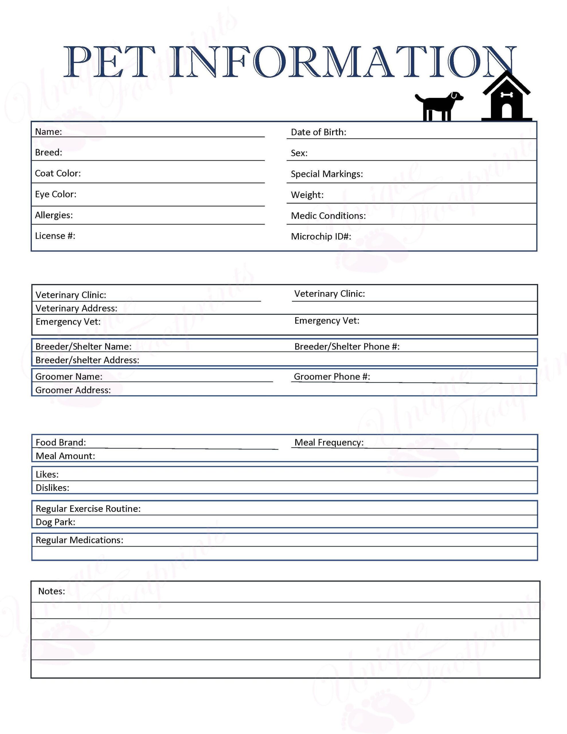 Printable Pet Information Sheet Template – A versatile and adjustable file or design, referred to as a printable template, can be used for a range of functions. They are frequently available in digital formats, enabling easy printing or online sharing.