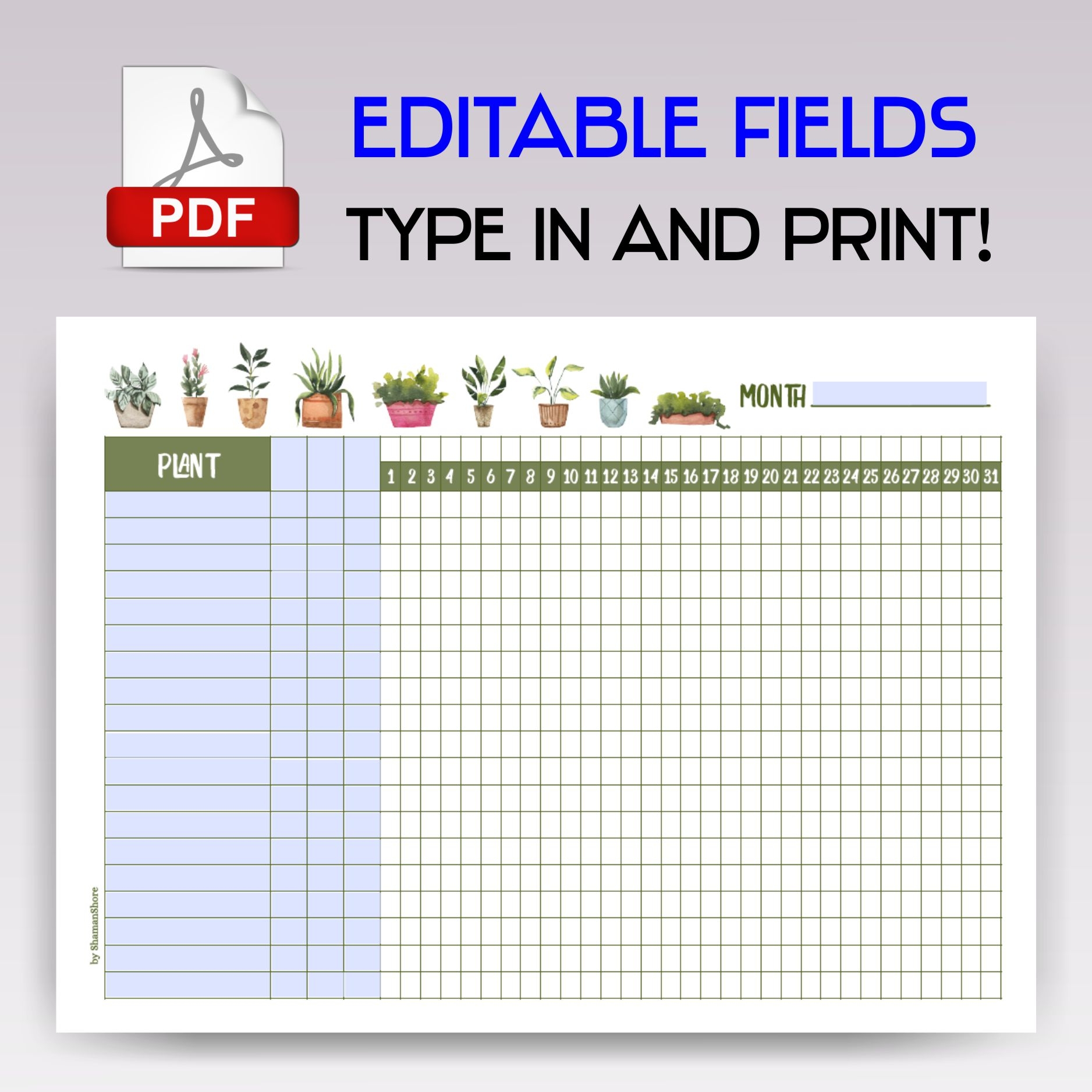 Fillable Plant Watering Schedule Template PDF Editable Form Inspire Uplift