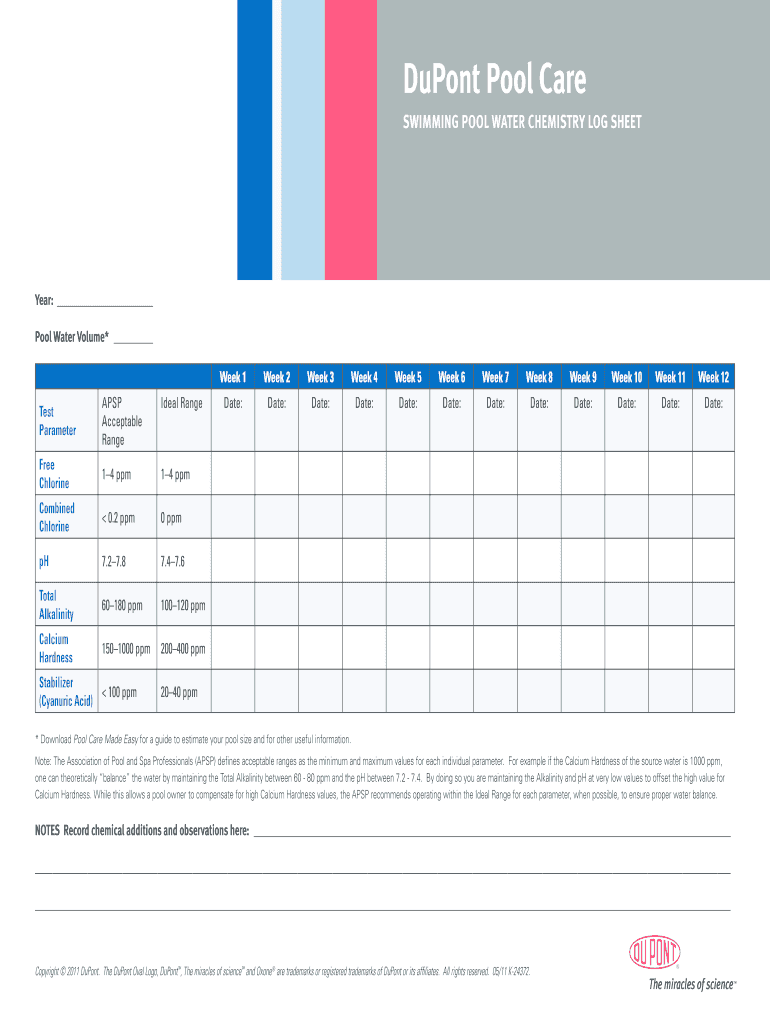 Pool Chemical Log Sheet Pdf Fill Out Sign Online DocHub