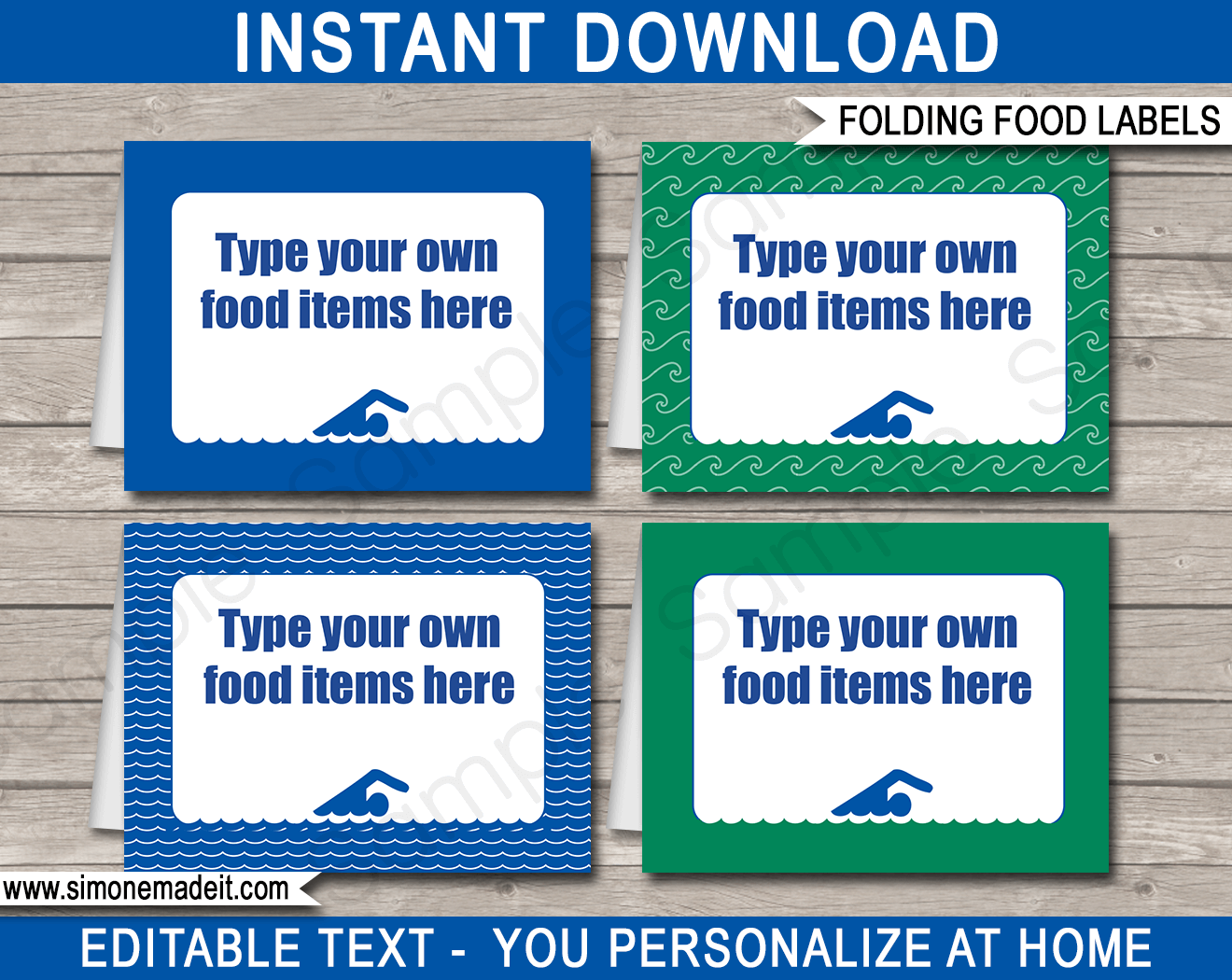 Pool Party Food Labels Template Place Cards Swimming Party Theme