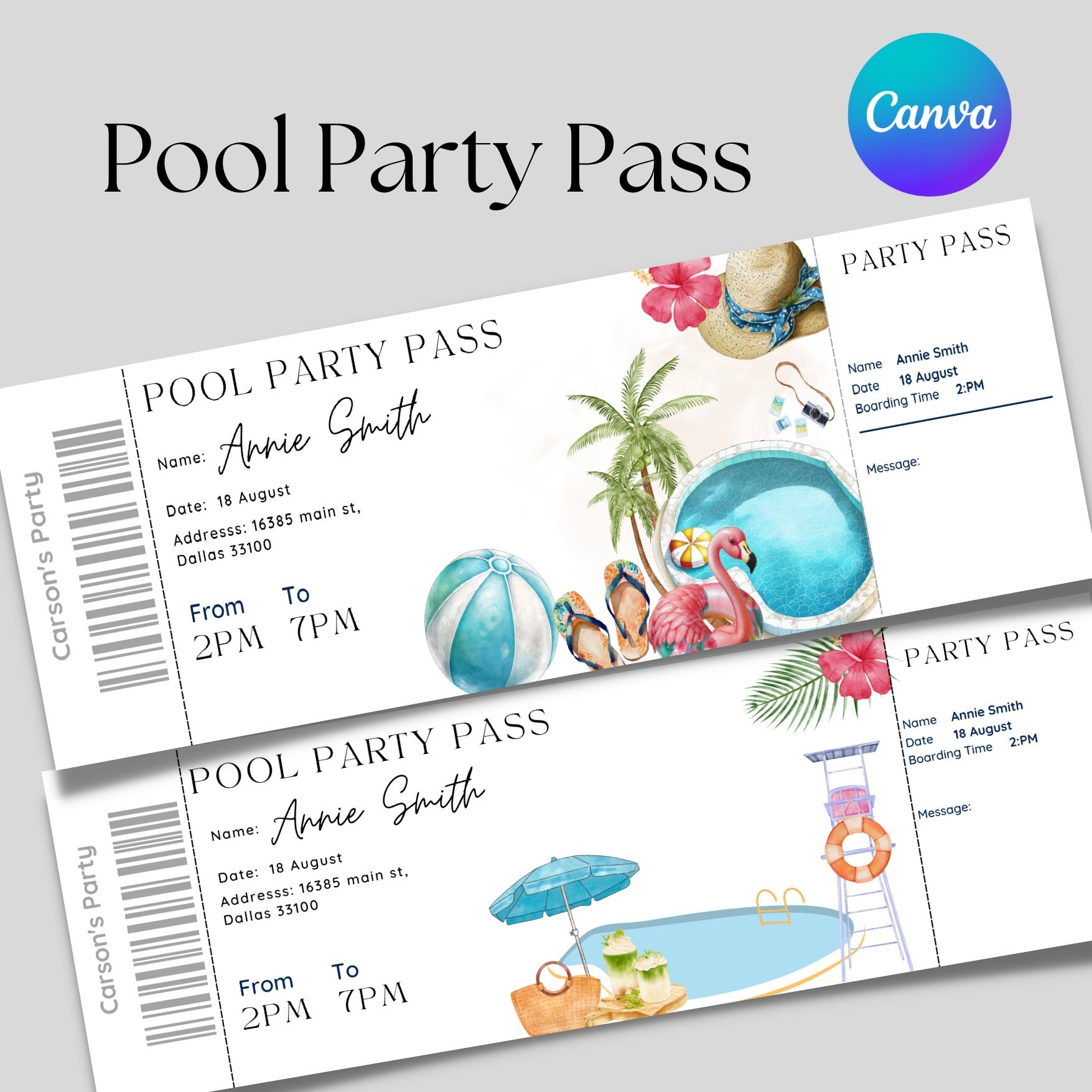 Printable And Editable Pool Party Pass Ticket Summer Pool Party Ticket Invitation Template Pool Party Pass Invitation Template Etsy