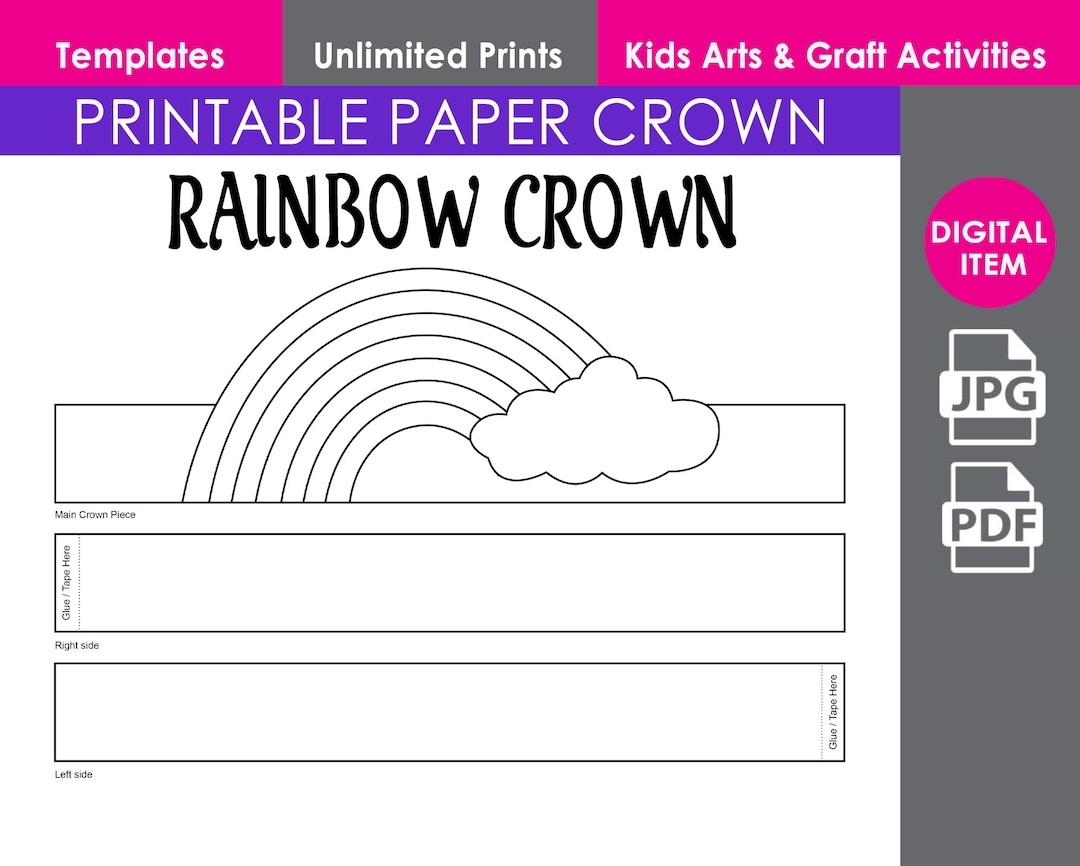 Rainbow Paper Crown Print And Cut Crown Template Party D Cor Kids Accessories And Craft Birthday Party Printable Favor Costume DIY Etsy