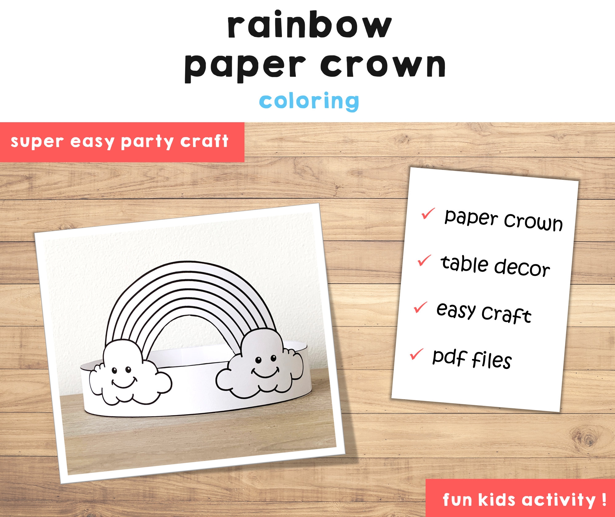 Rainbow Paper Crowns Astronomy Summer Spring Printable Kids Craft Coloring Birthday Party Favor Costume DIY Instant Download Template Etsy