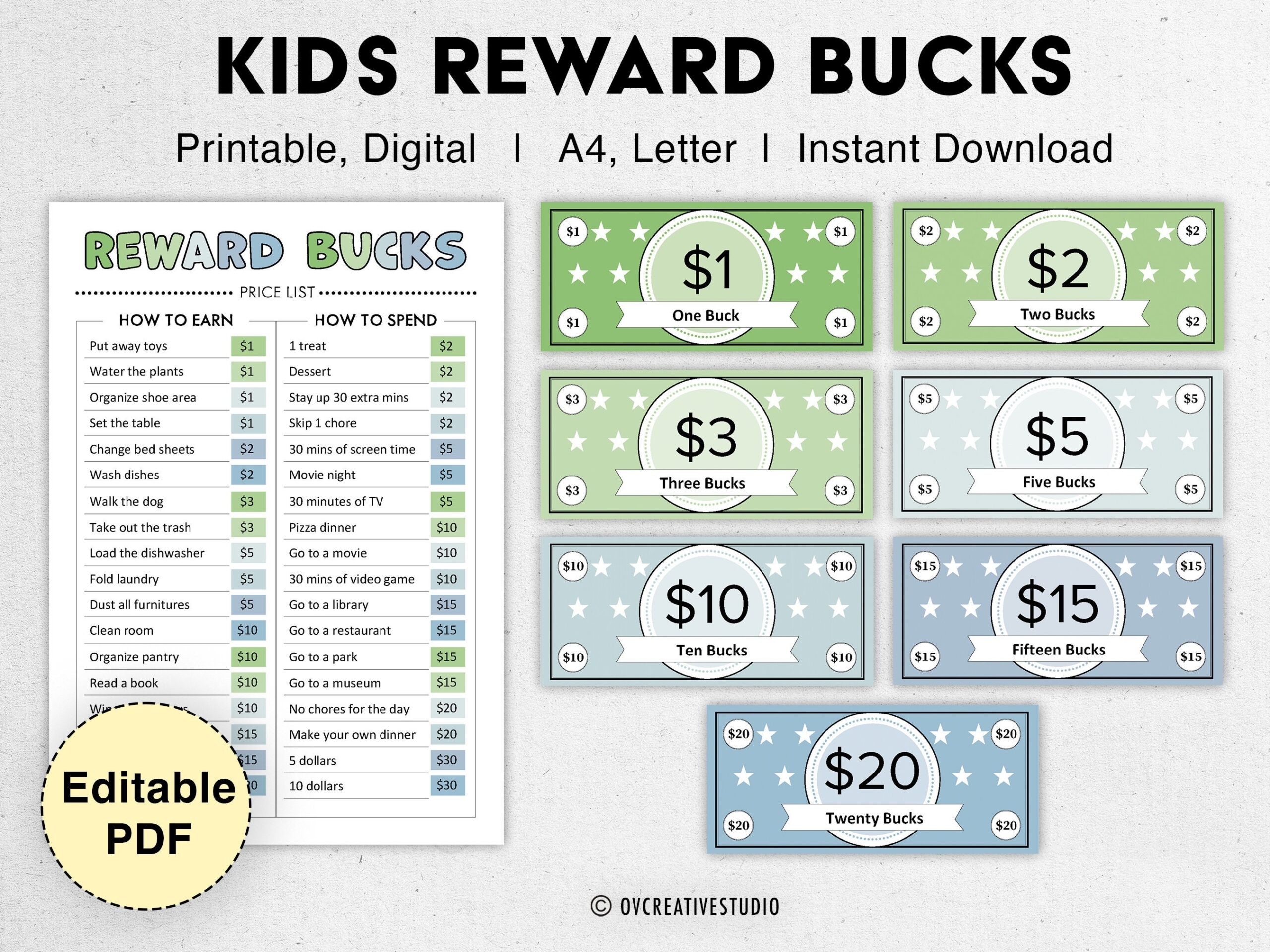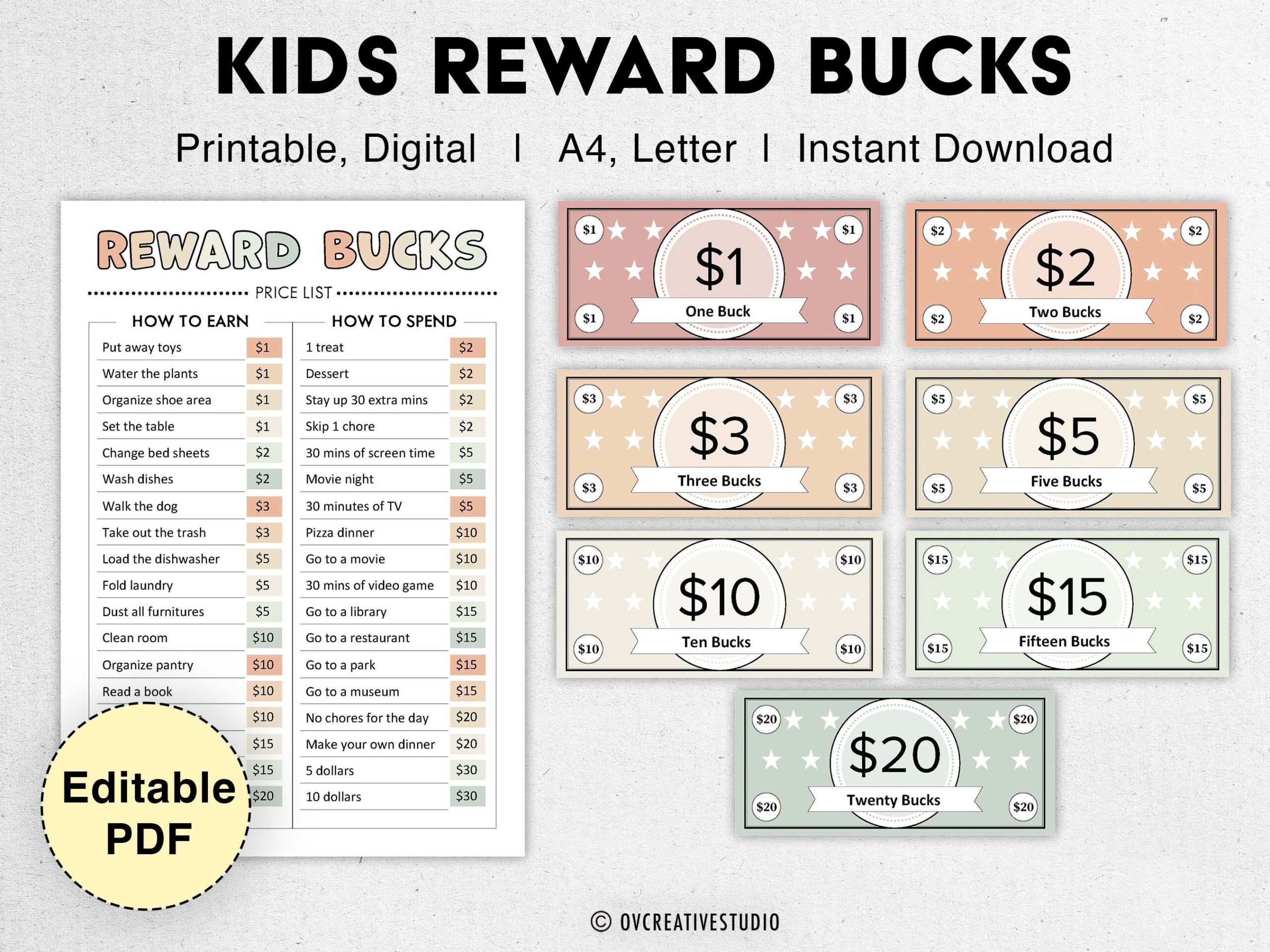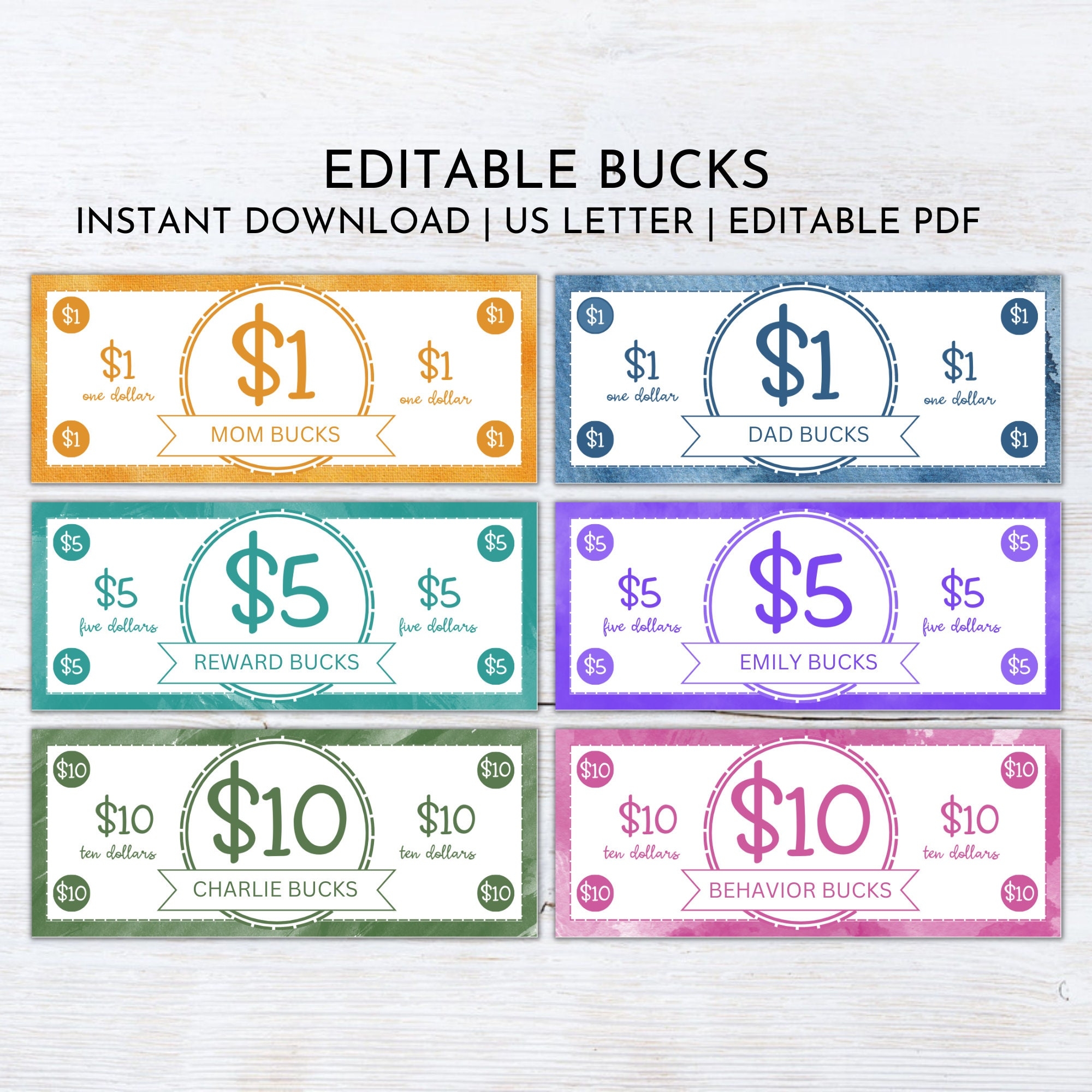 Editable Kids Reward Bucks Printable Mom Bucks PDF Reward System For Kids Chore Bucks Good Behavior Bucks Play Money Pretend Money Etsy