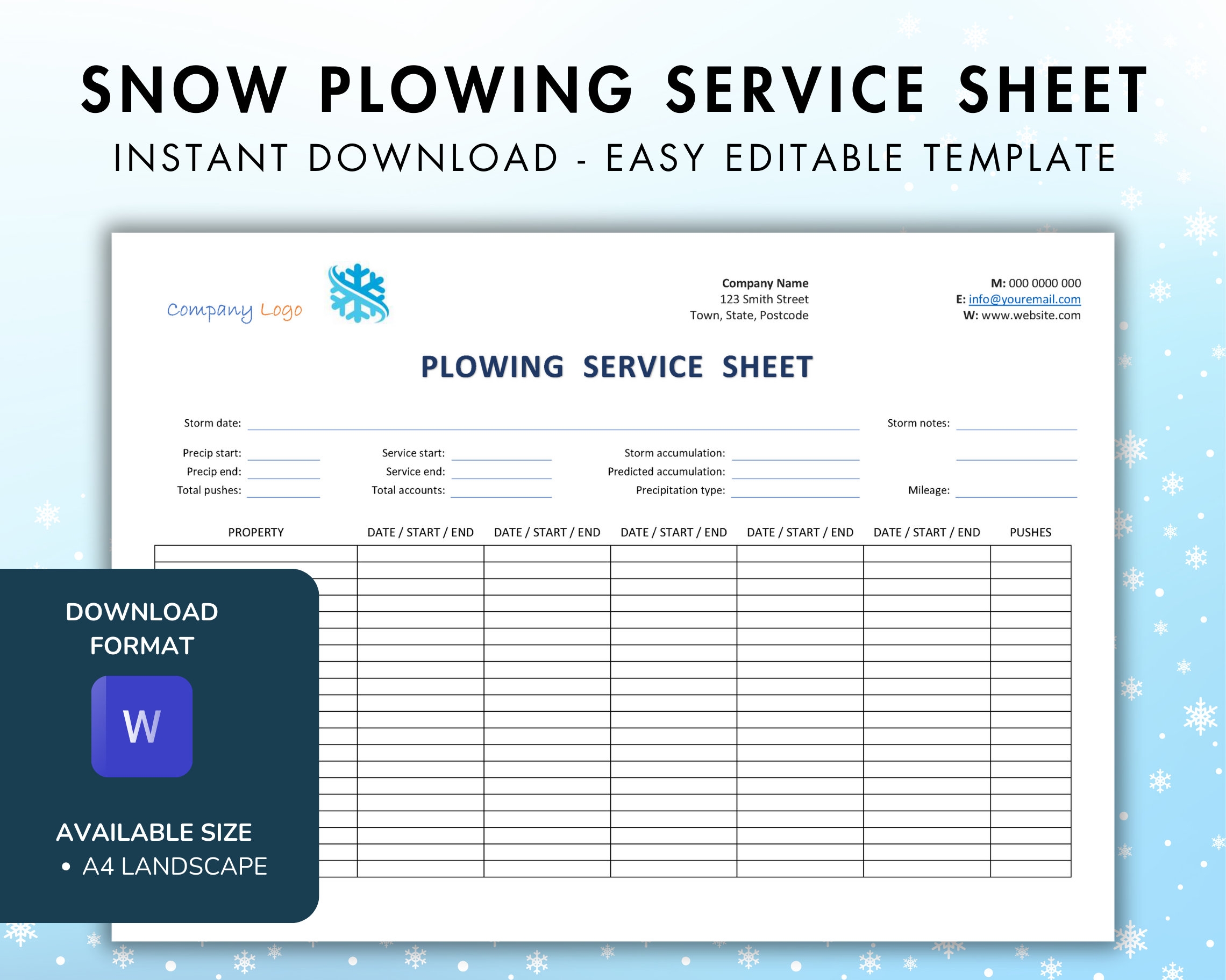 Snow Removal Agreement Template Plowing Service Sheet Simple Easy Digital Download Microsoft Word Editable Instant Download Etsy