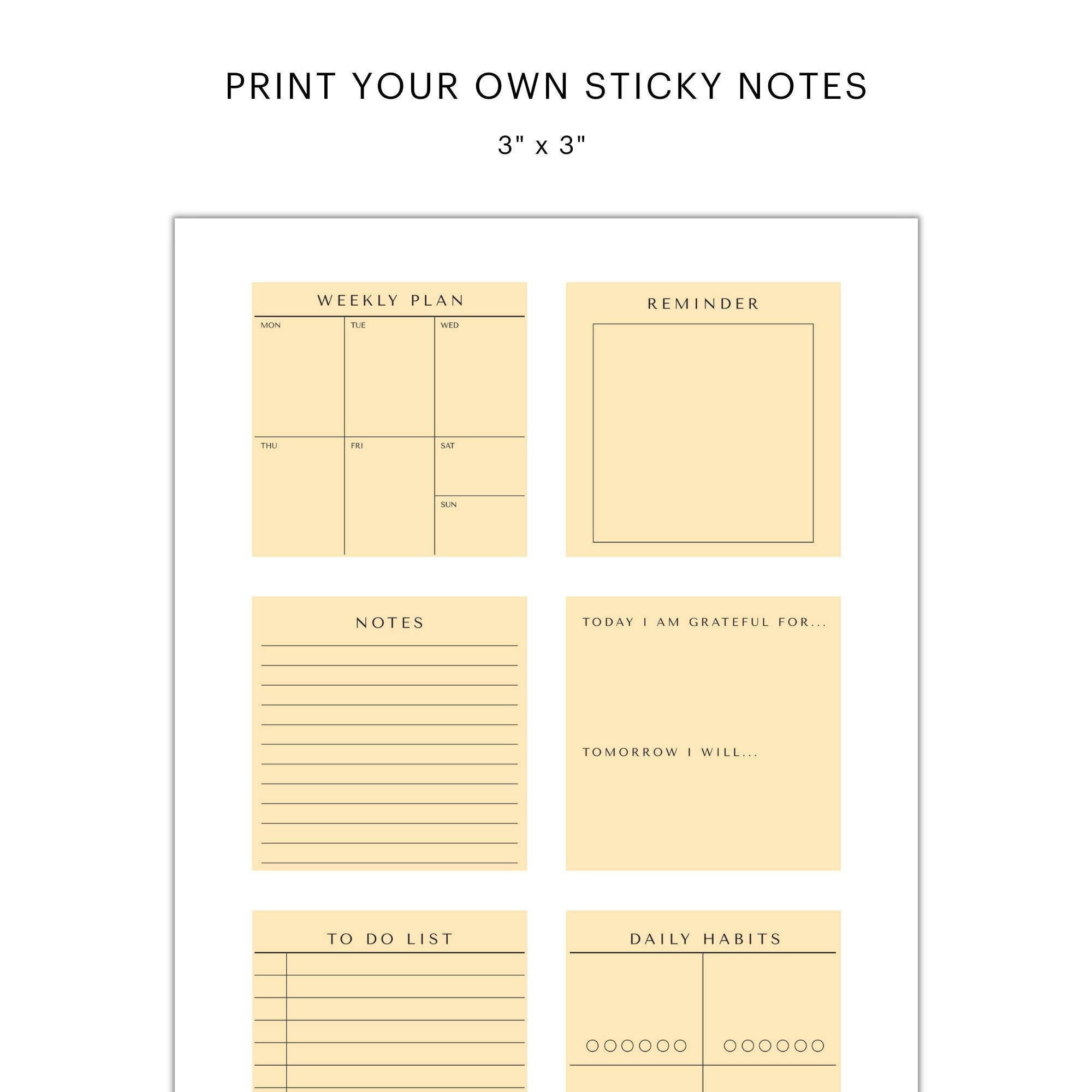 Printable Sticky Notes Printable Post Its Print Your Own Sticky Notes Planner Sticky Notes Custom Sticky Notes Printable PDF Instant Download Etsy Custom Sticky Notes Notes Template Sticky Note Planner