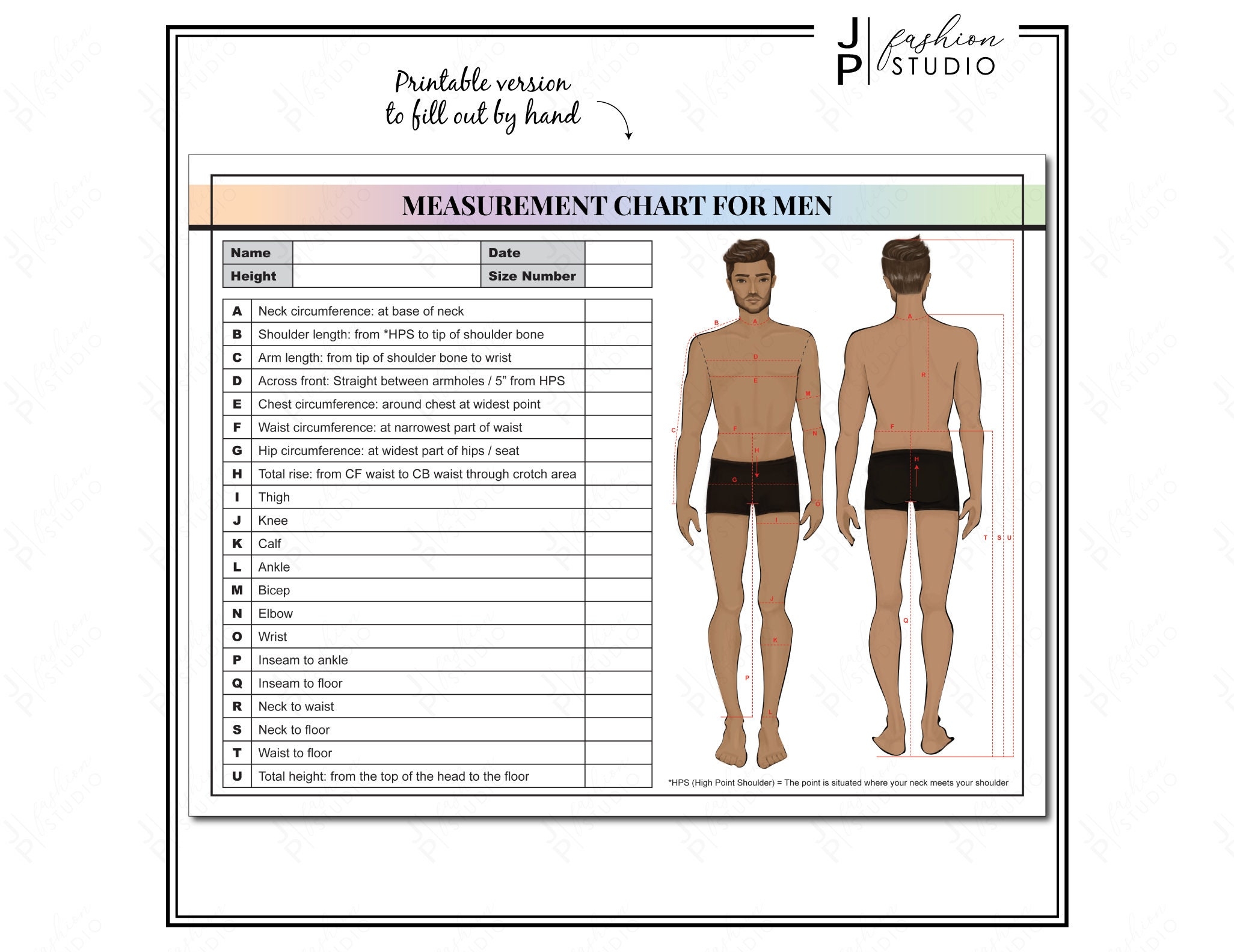 PRINTABLE Men S Body Measurement Sheet Fashion Designer Template Sewing Measurement Sheet PDF JPG Etsy
