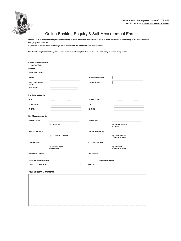 Suit Measurements Template Fill Online Printable Fillable Blank PdfFiller