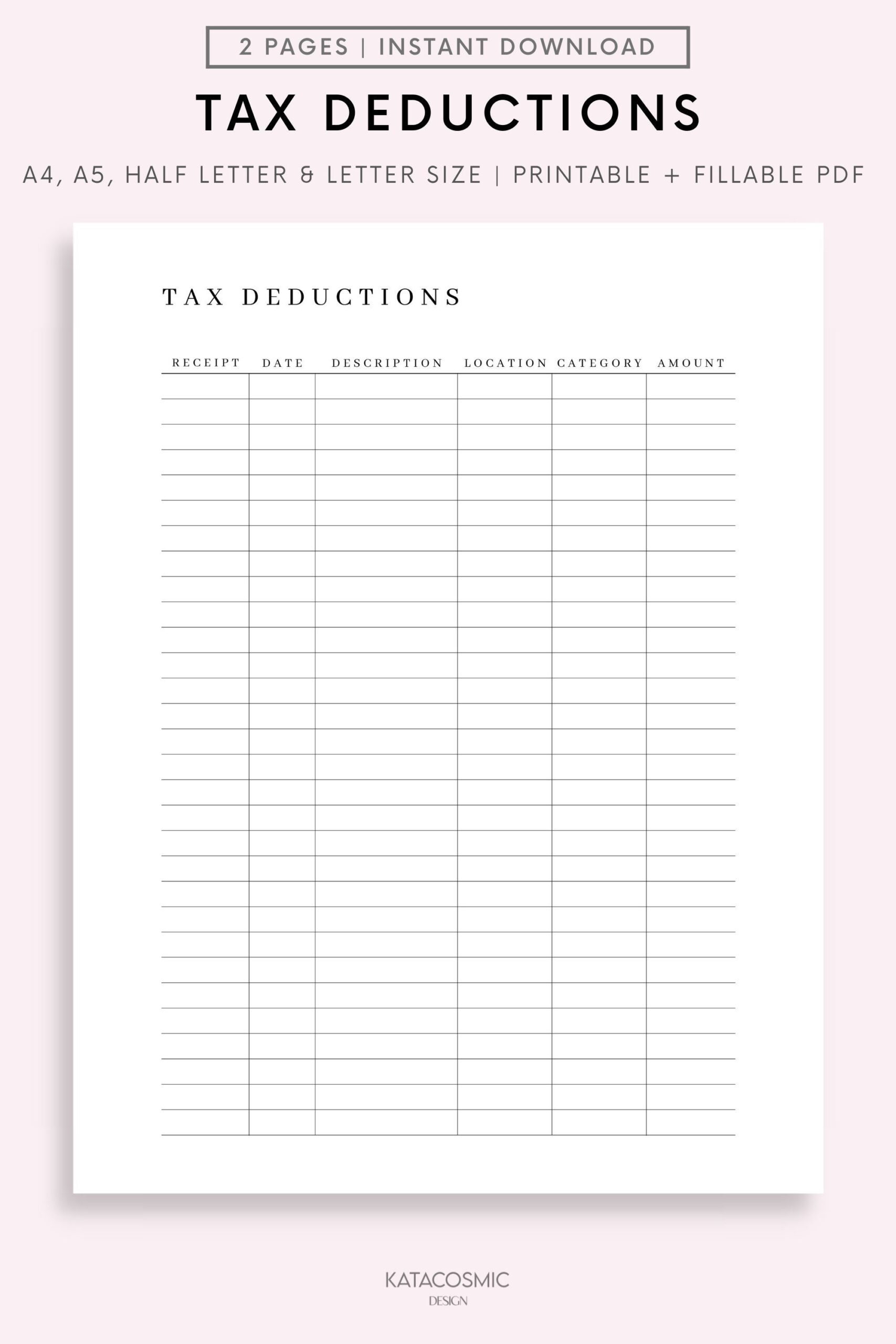 Printable Tax Deduction Tracker Business Tax Log Purchase Records Tax Organizer Budget Template A4 A5 Letter Half Instant Download PDF Etsy