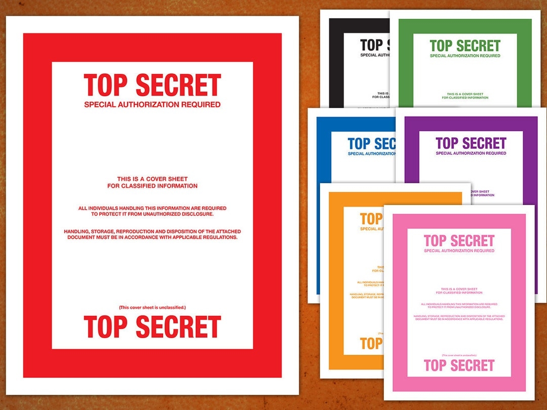 TOP SECRET Classified Document Cover Sheets Printable PDF Instant Download Downloadable Printable Print Etsy