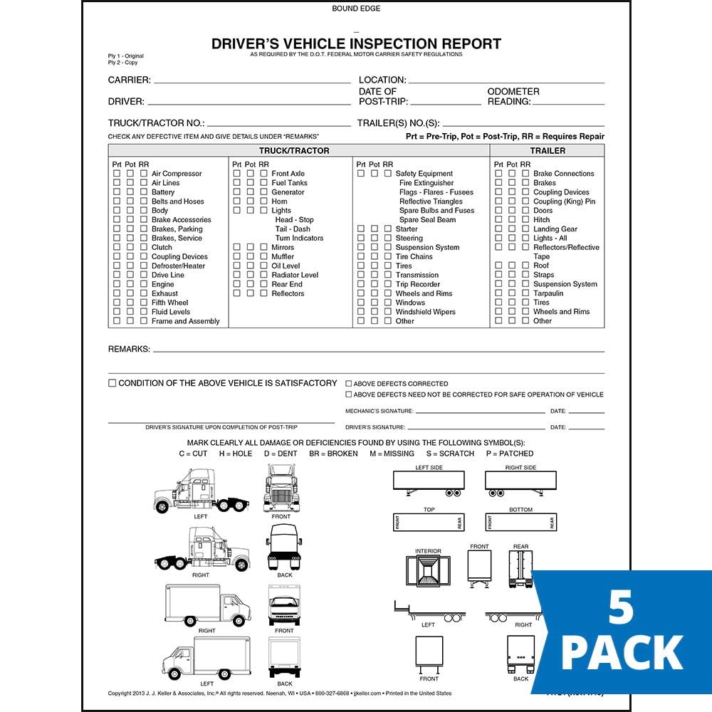 Amazon Detailed Driver S Vehicle Inspection Report With Truck Tractor Trailer Illustrations 5 Pk Book Format 2 Ply Carbonless 8 5 X 11 31 Sets Of Forms Per DVIR Book J J Keller