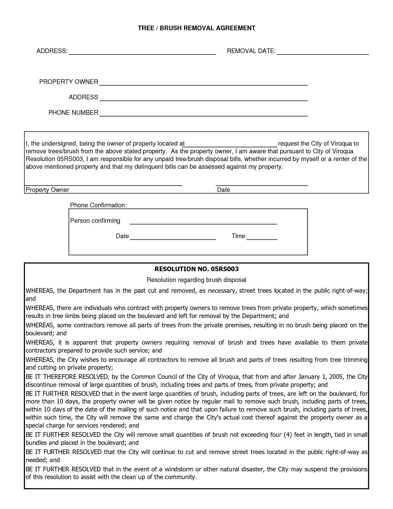 Printable Tree Removal Contract Template