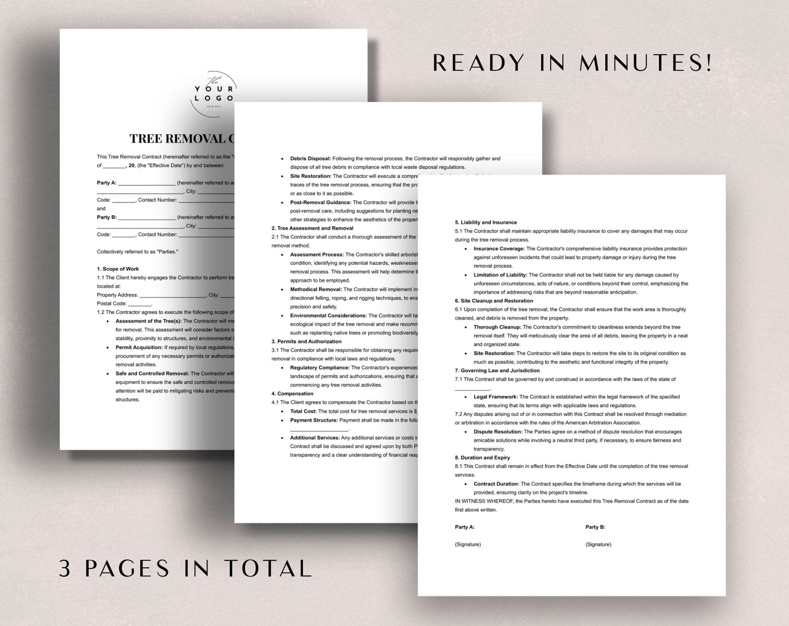 Printable Tree Removal Contract Template Word Customizable PDF Agreement For Tree Removal Etsy