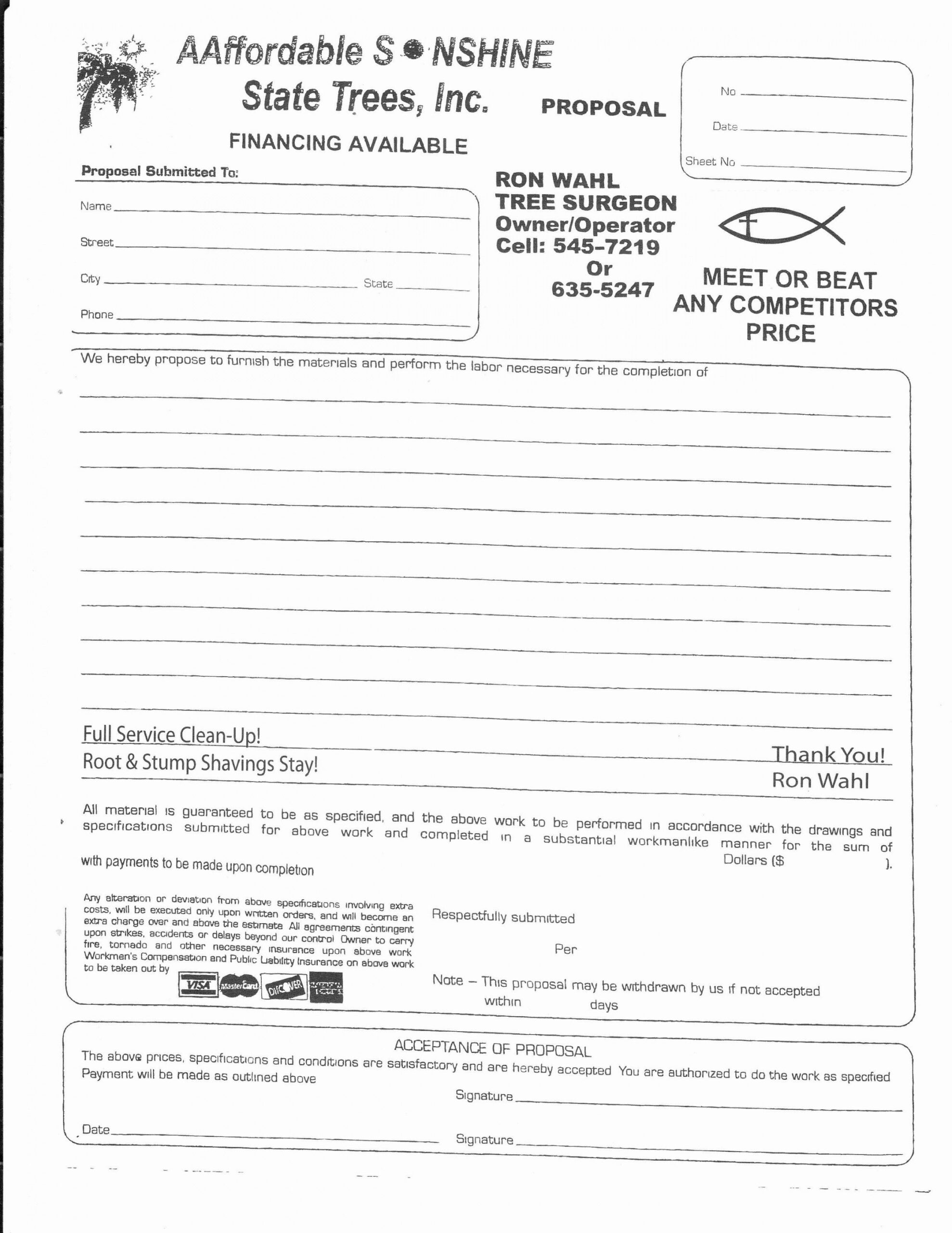 Printable Tree Removal Contract Template Fresh 10 Best Of Tree Removal Tree Trimming Estimate Estimate Template Contract Template Templates