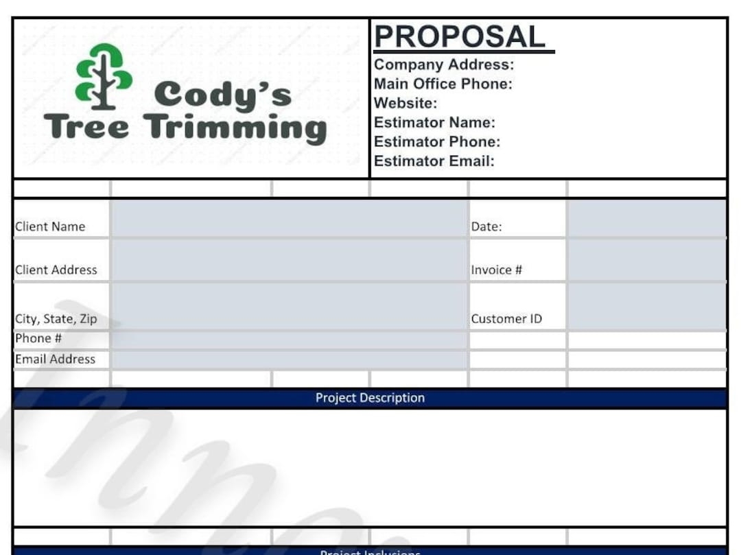 Tree Trimming Quote Template Tree Care Estimate Template Tree Trimming Quote Handyman Quote Estimate Template Quote Template Etsy