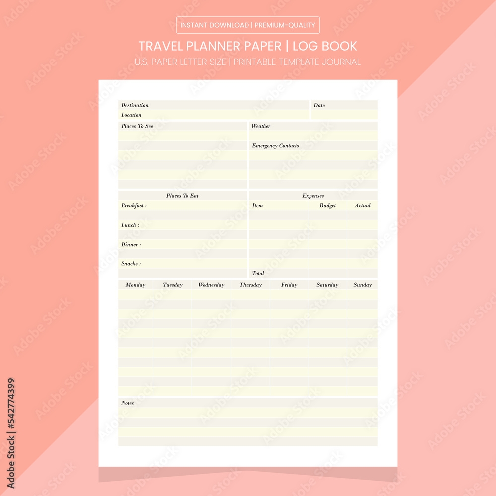 Travel Planner Log Book Travel Journal Notebook Printable Template Stock Vector Adobe Stock