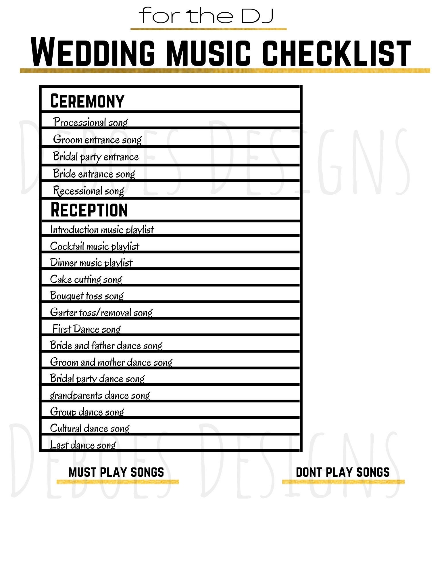 Printable Wedding Song List For Dj Template – A versatile and adjustable file or design, referred to as a printable template, can be used for a range of functions. They are often readily available in digital formats, enabling simple printing or online sharing.