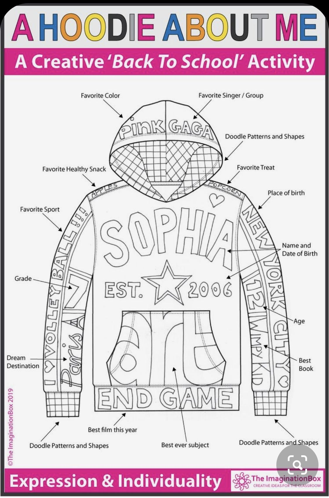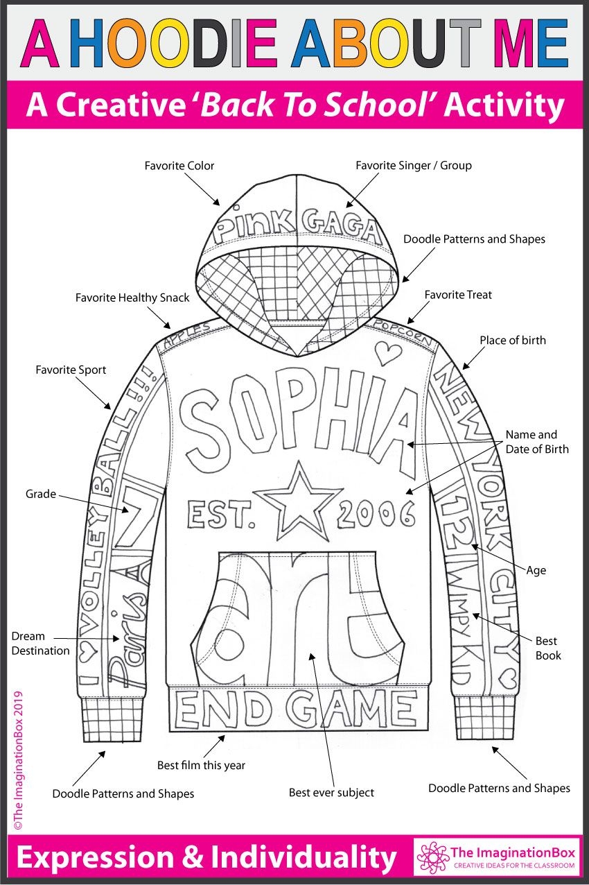 Design A Hoodie All About Me First Week Back To School Art And Writing Activity Back To School Art School Activities About Me Activities